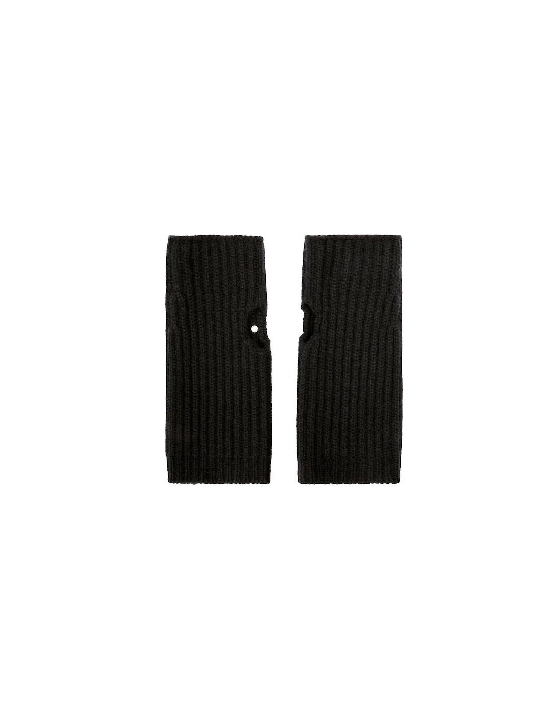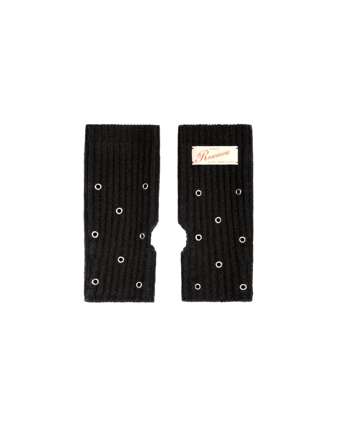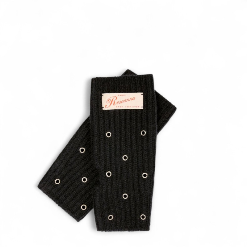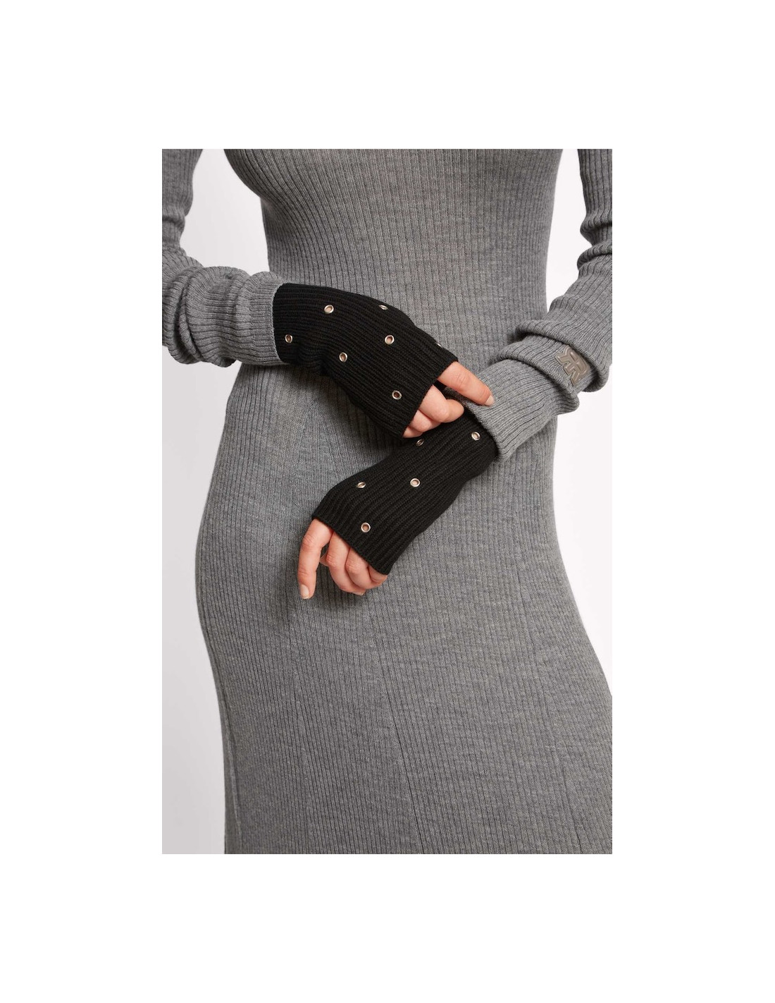 Ces mitaines en maille côtelée sont rehaussées d'œillets métalliques posés à la main, pour une touche de modernité discrète et travaillée.