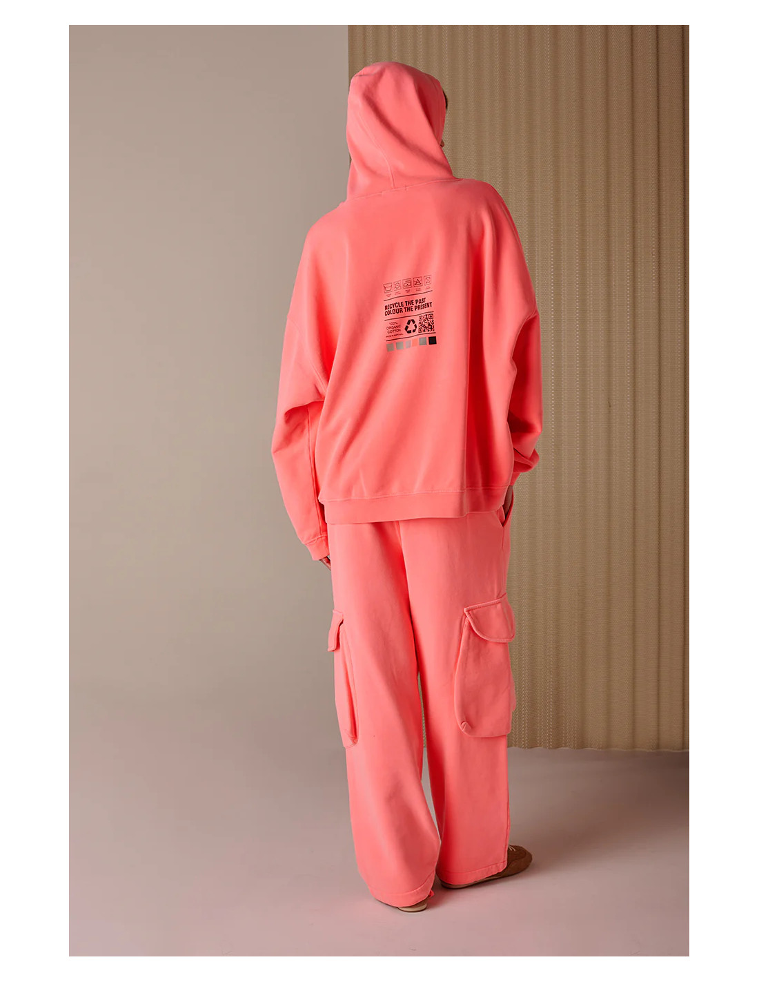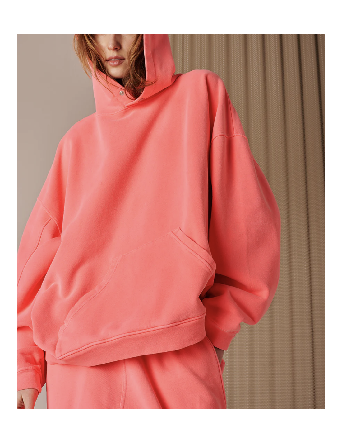 Sweatshirt oversize à capuche en coton bio corail fluo