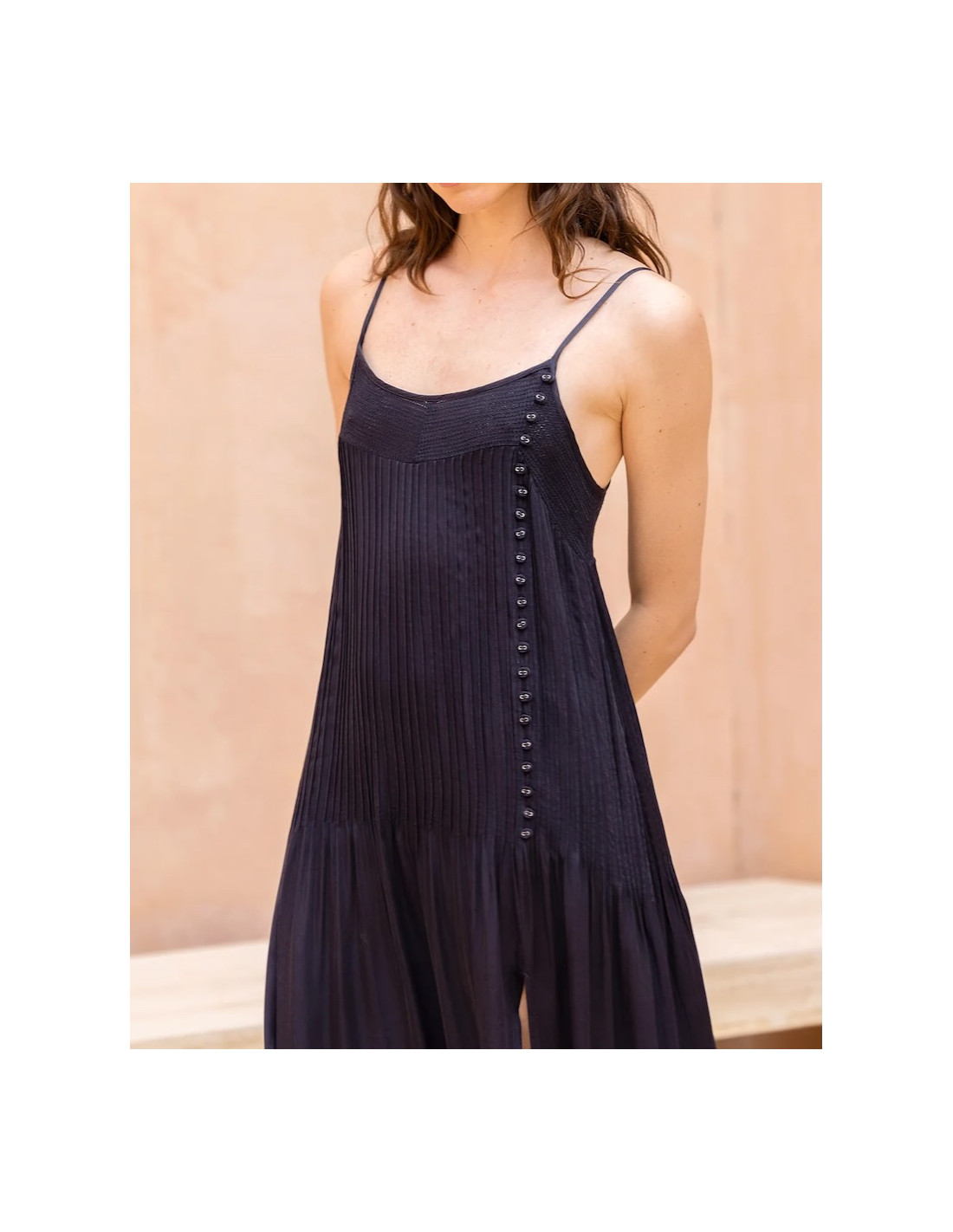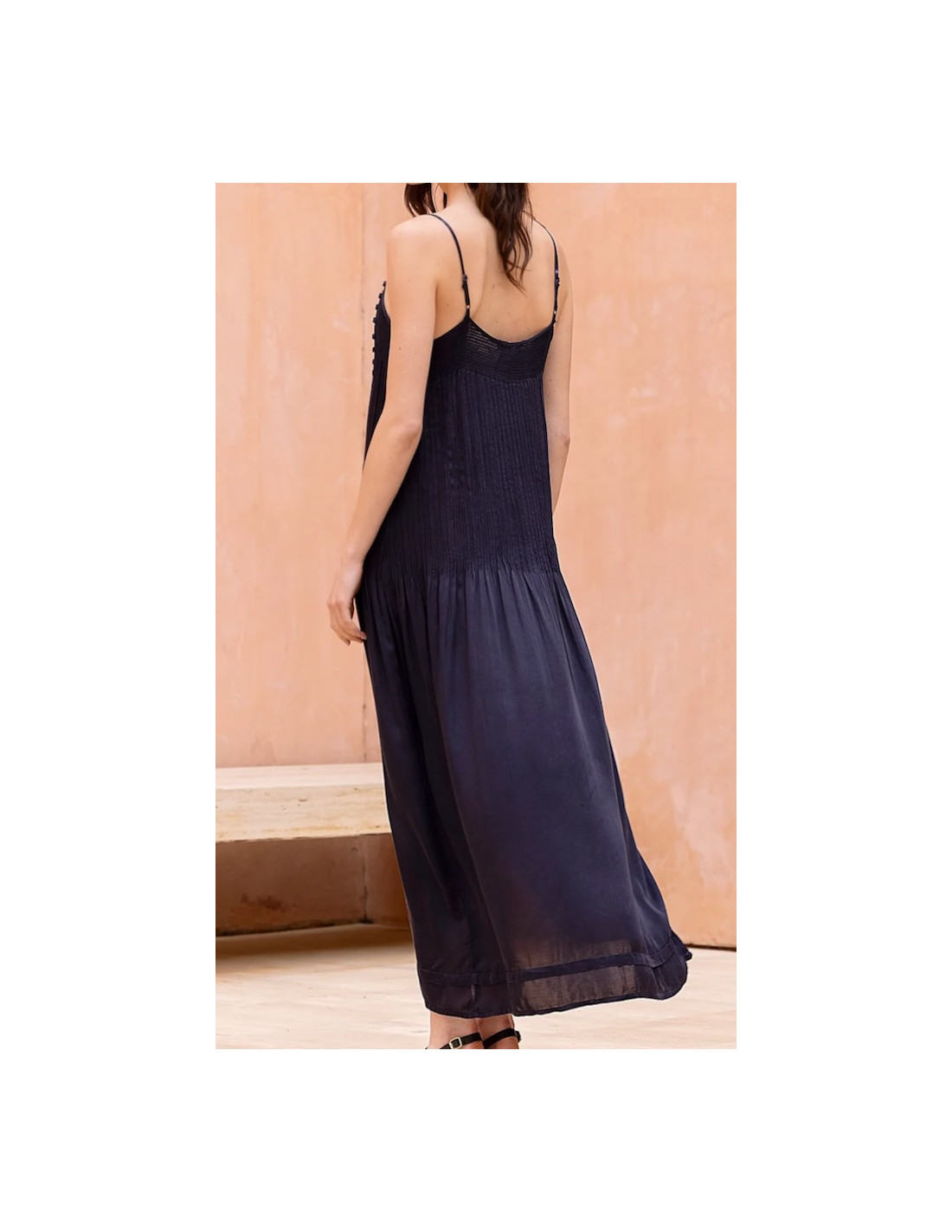 Robe coupe longue et fluide pour une allure élégante. Confectionnée en viscose satinée, elle capte la lumière tout en douceur.