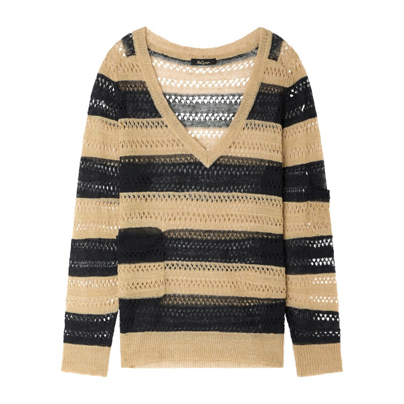 Pull en maille fine ajouré en lin à rayures