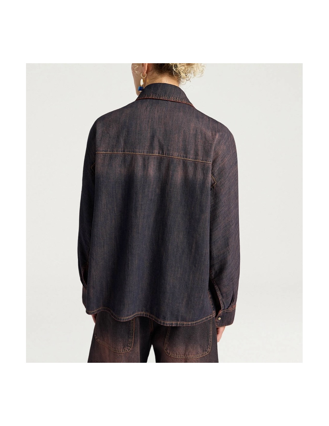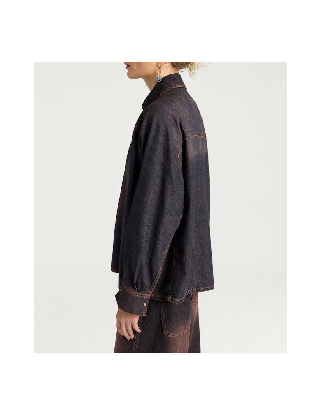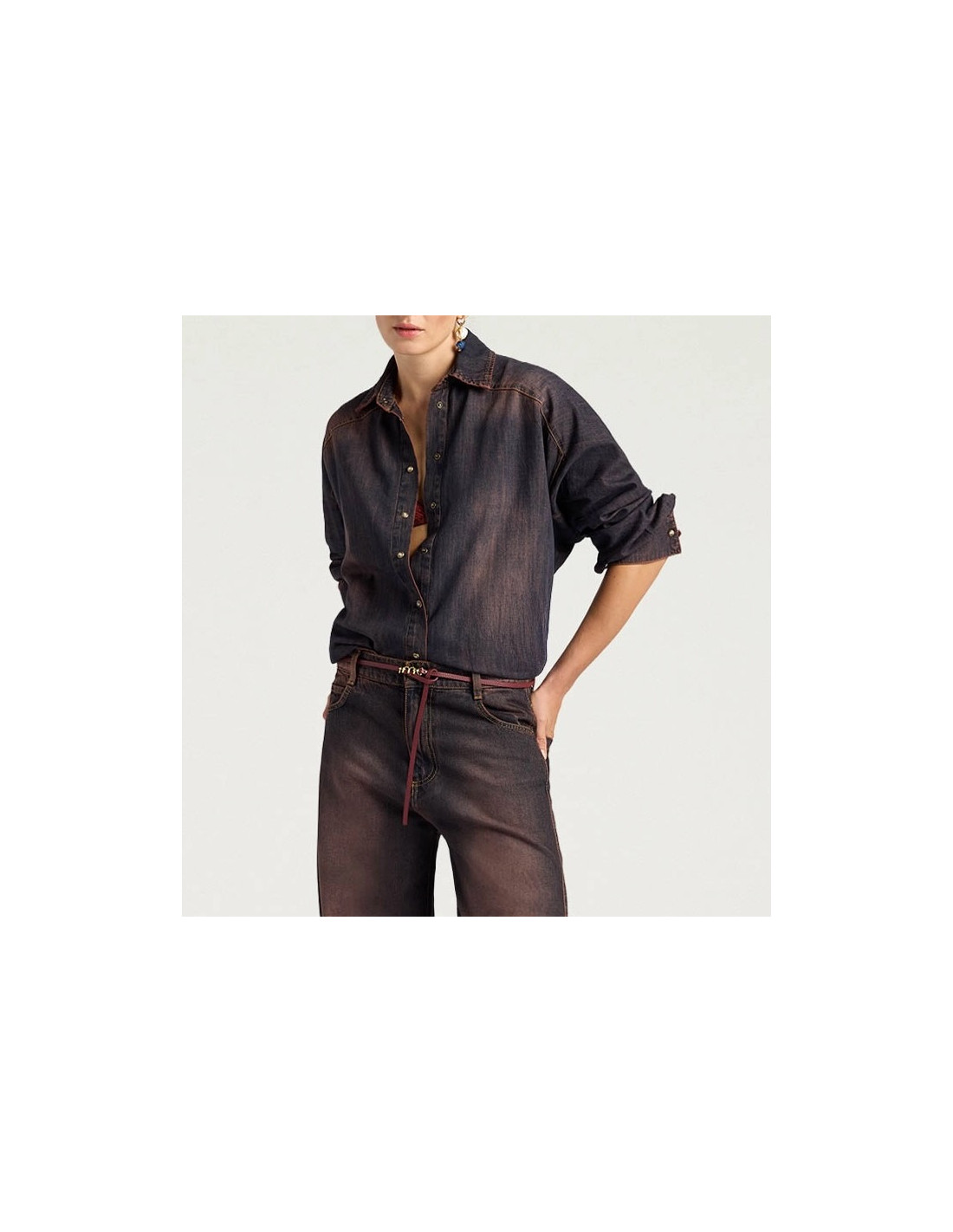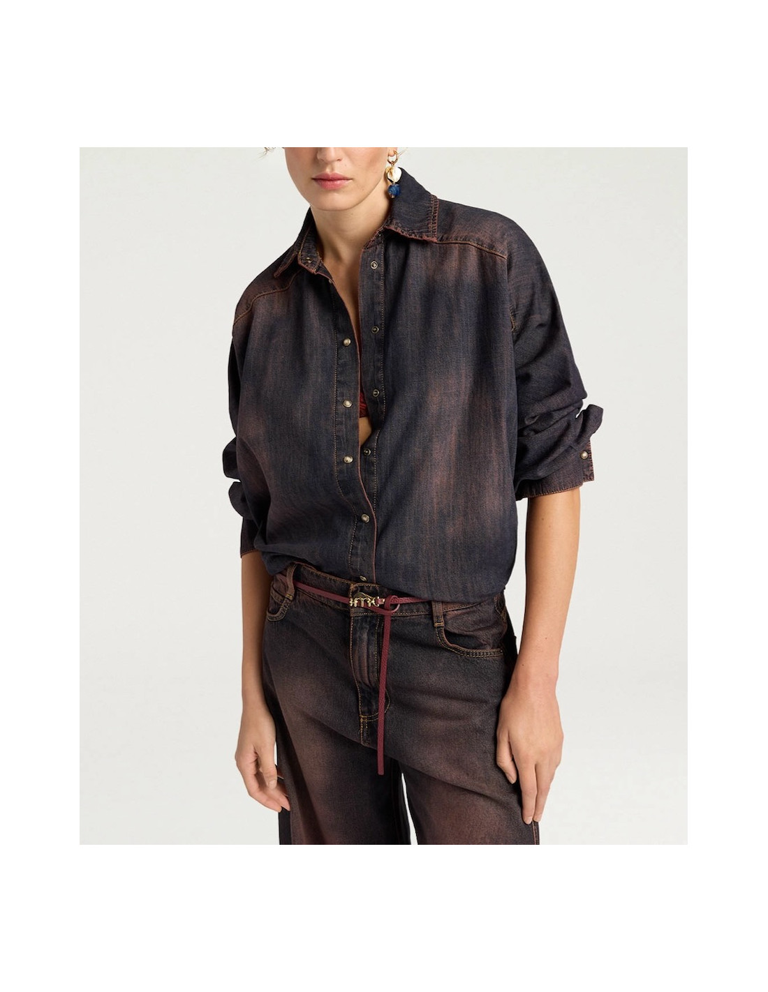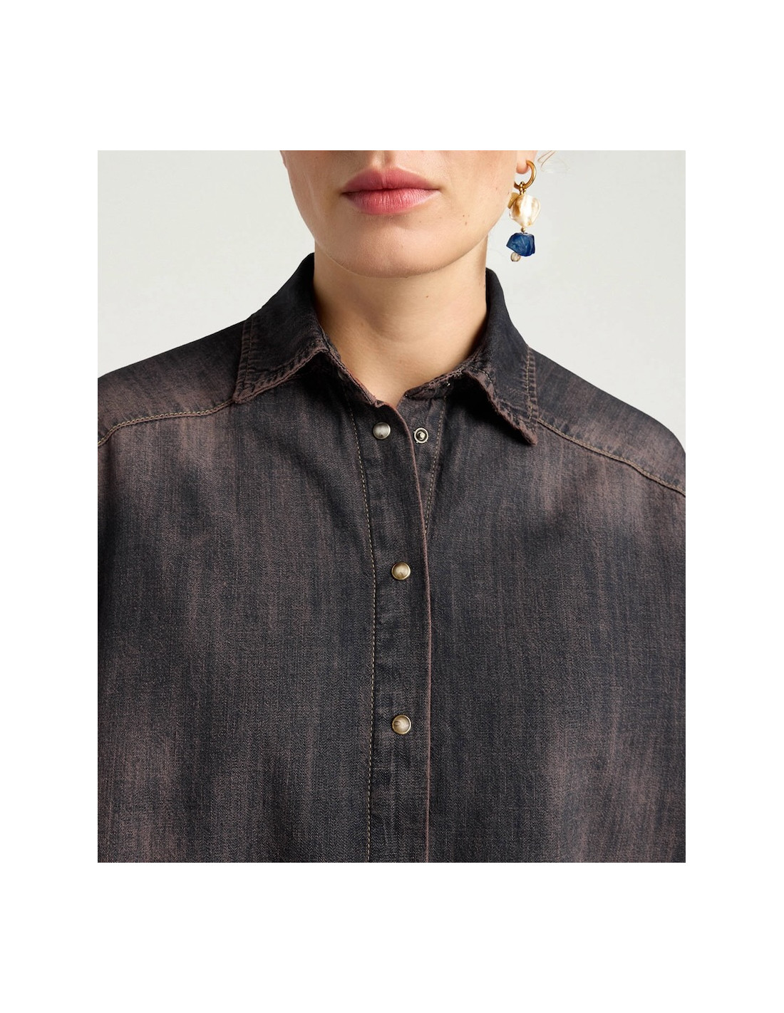 Chemise boxy en chambray lavé à la pierre et surteint.