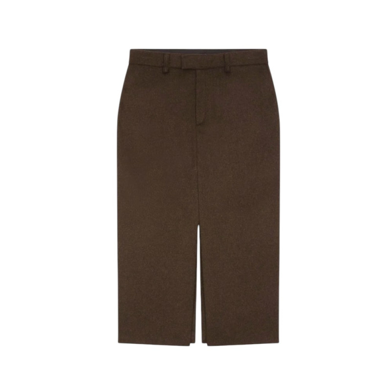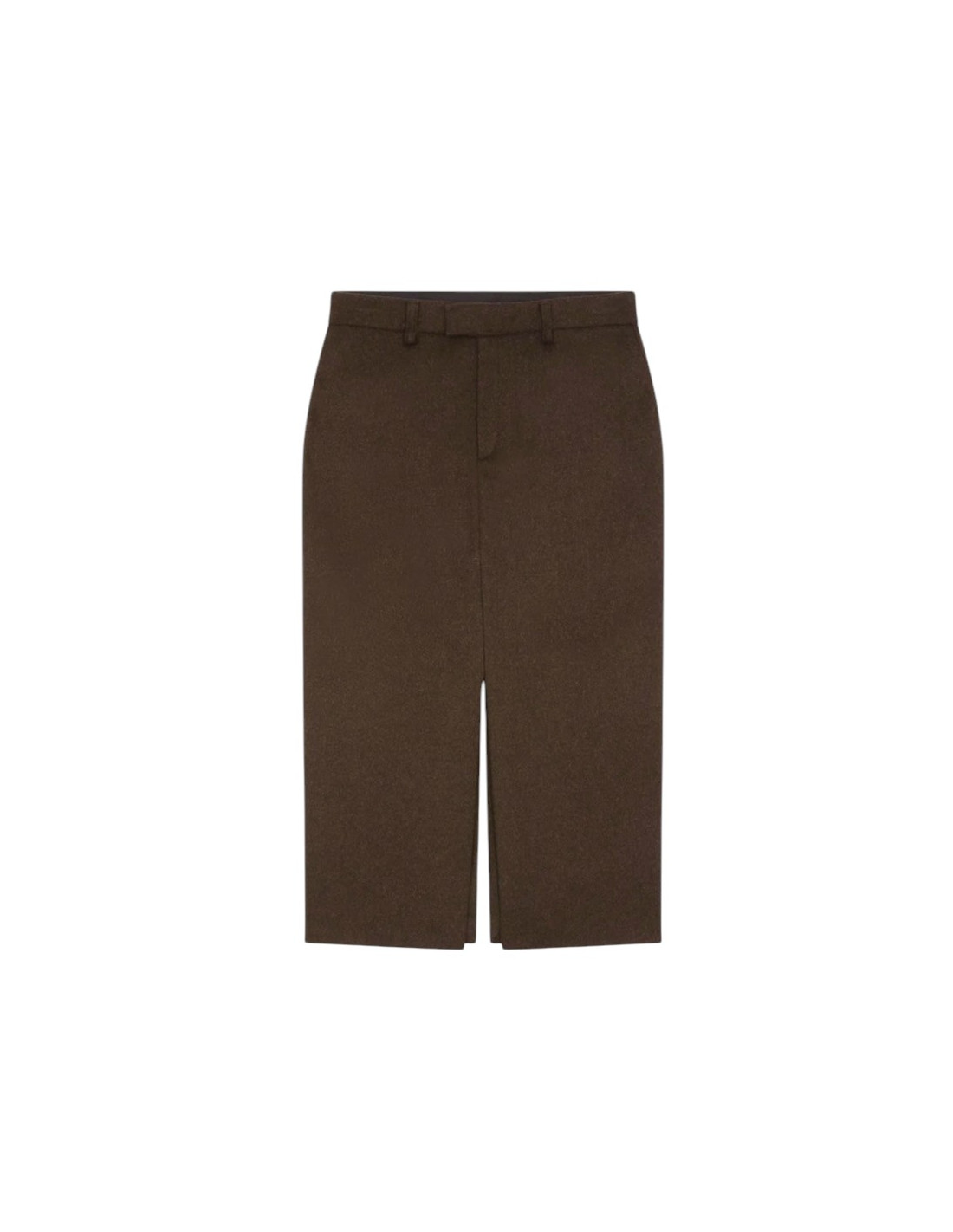 Jupe droite confectionnée en flanelle de laine texturée, soigneusement tissée en Italie.