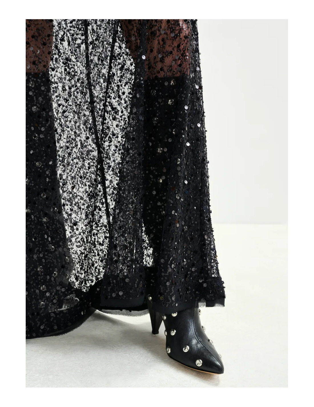 Couche extérieure ornée de sequins et de perles ton sur ton