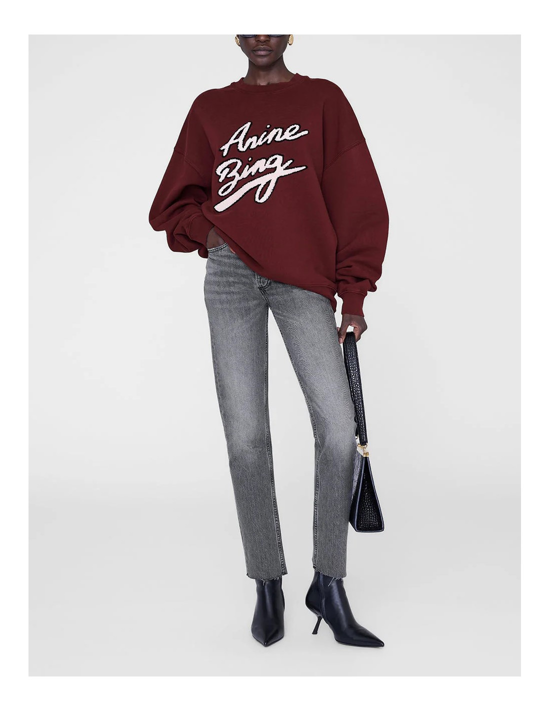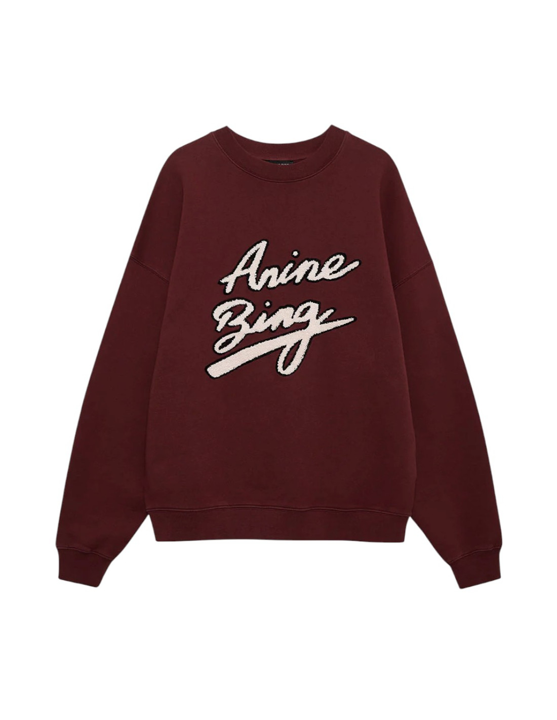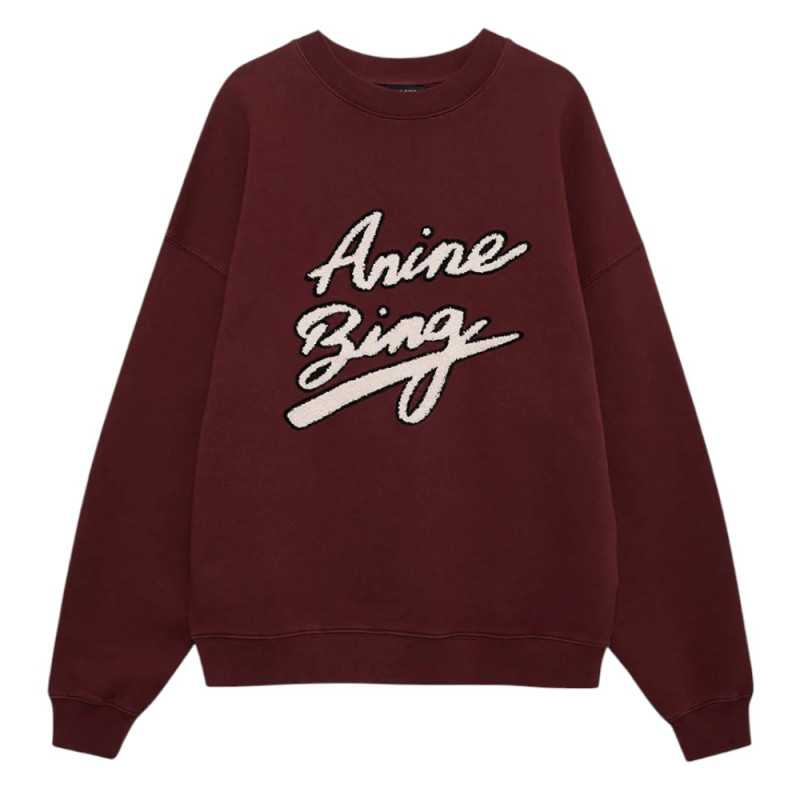 Patch signature "Anine Bing" en chenille contrastant sur la poitrine