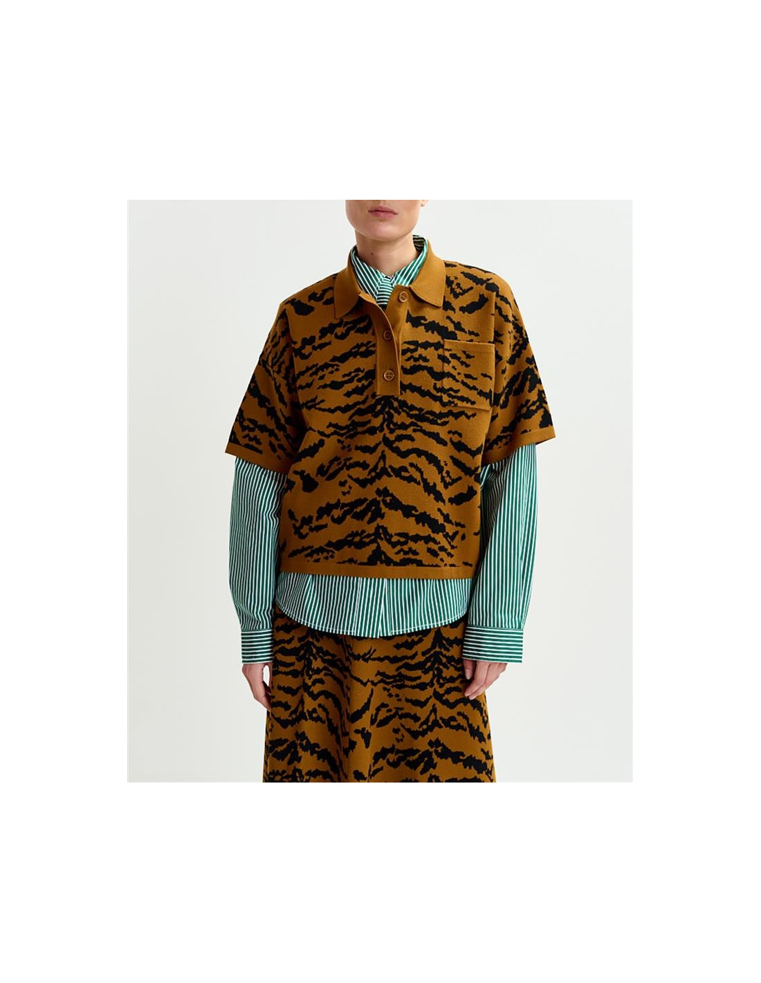 Polo en maille à motif zébré marron et noir