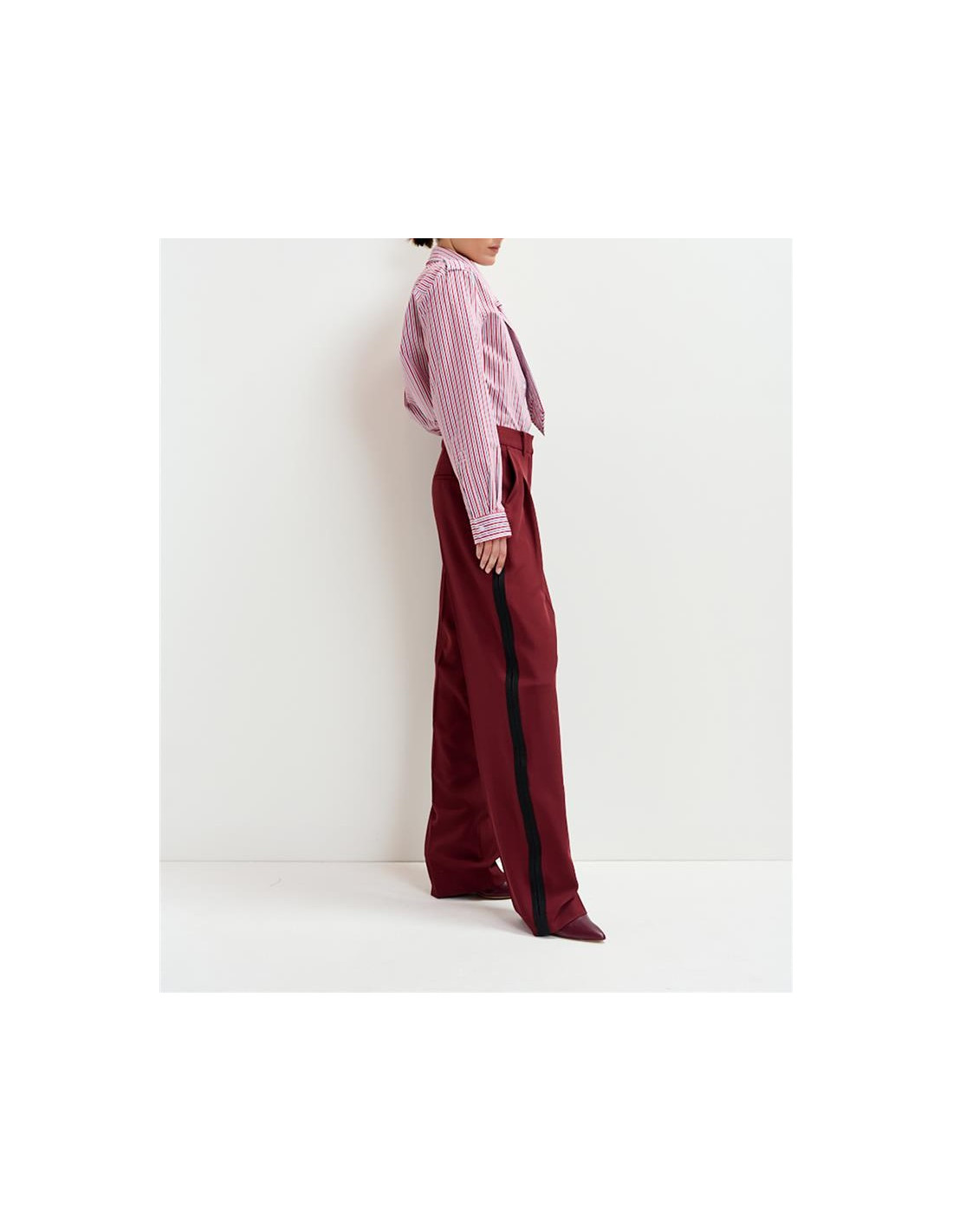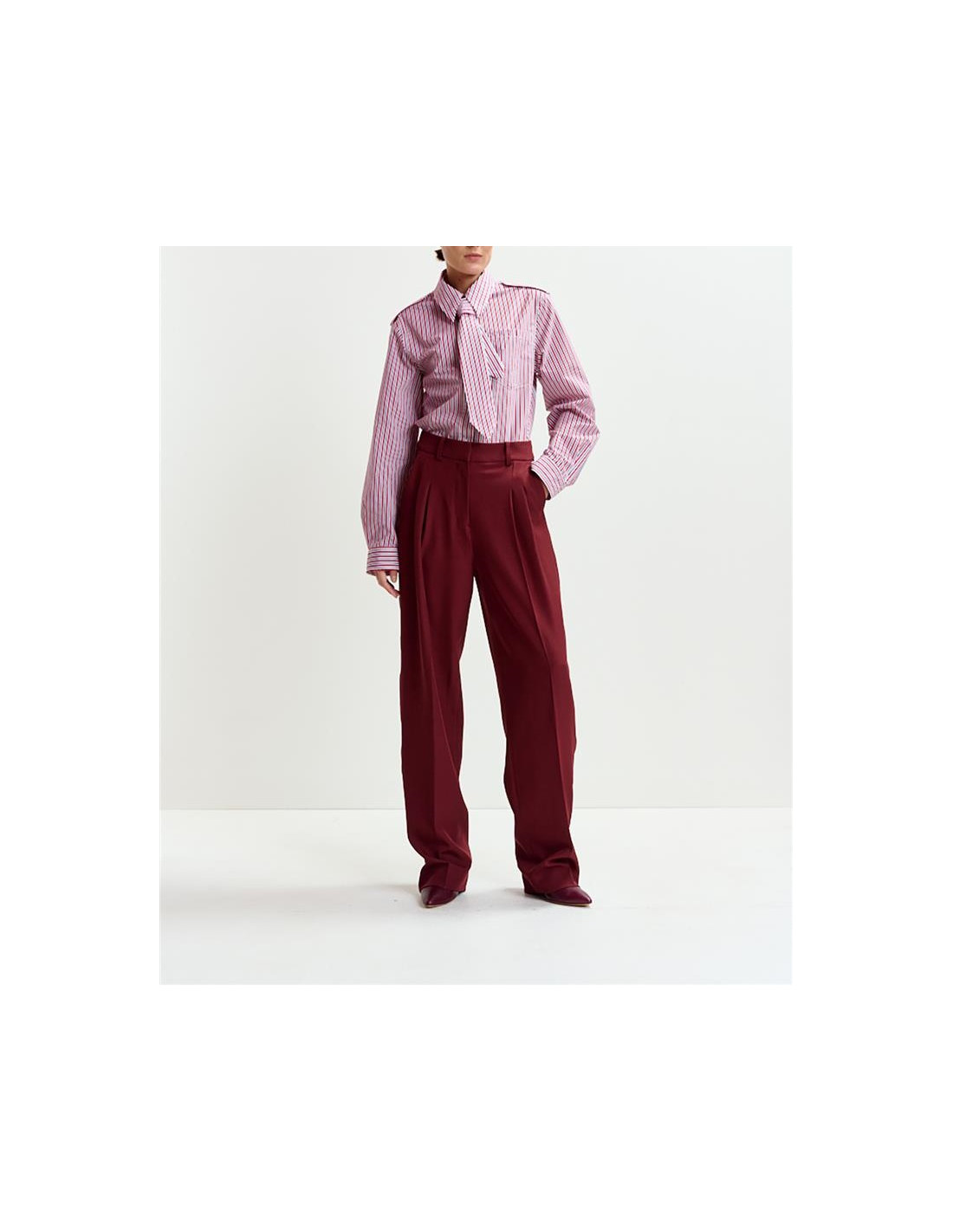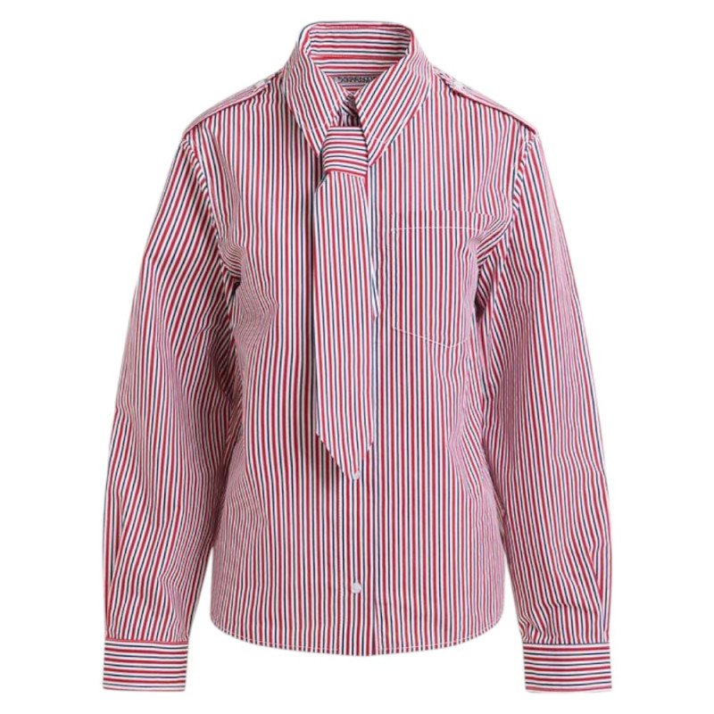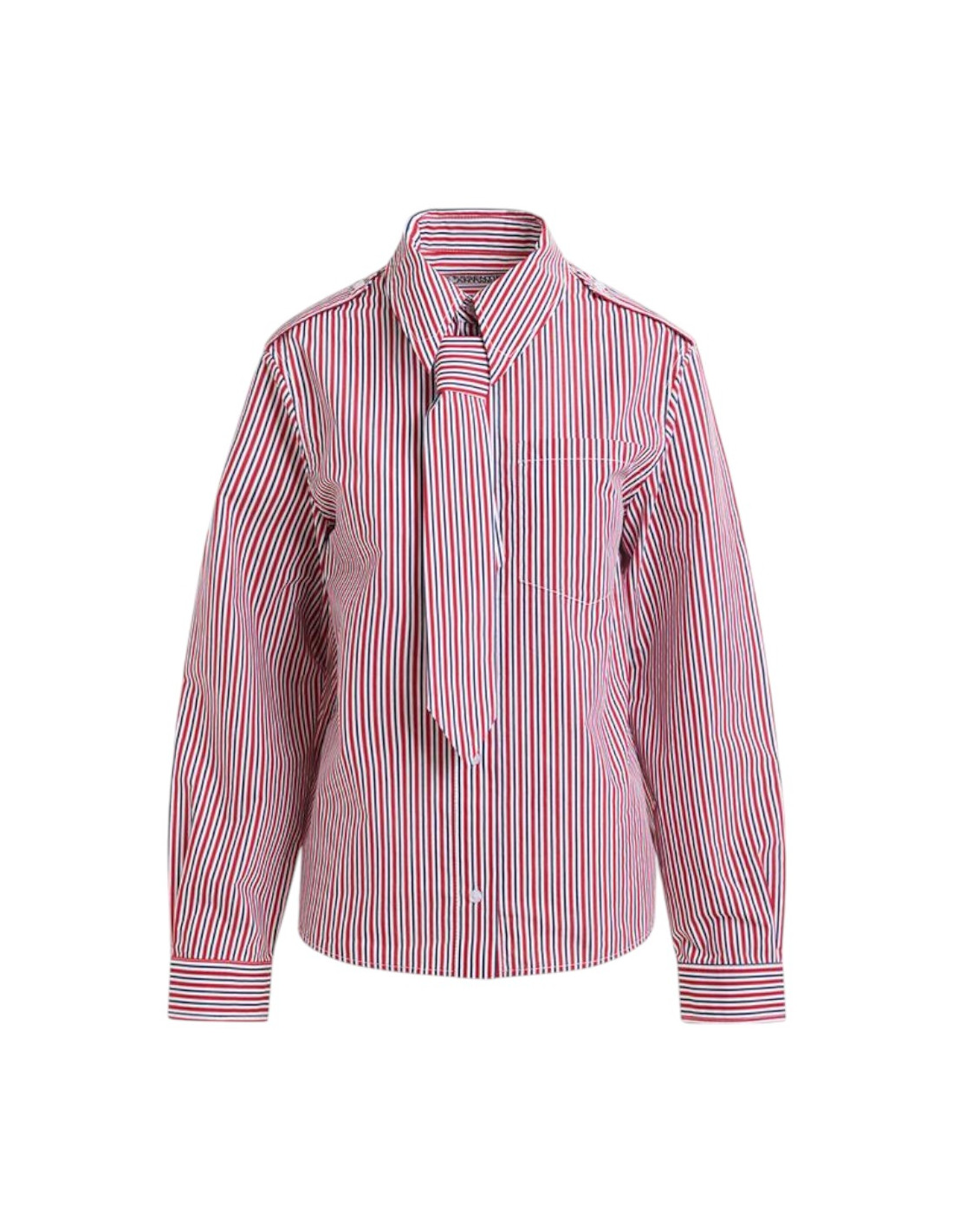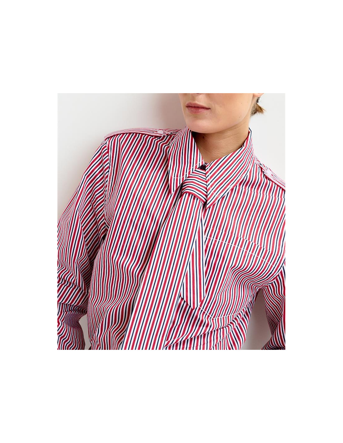 Chemise classique en coton mélangé à rayures rouge/blanc/noir avec cravate amovible