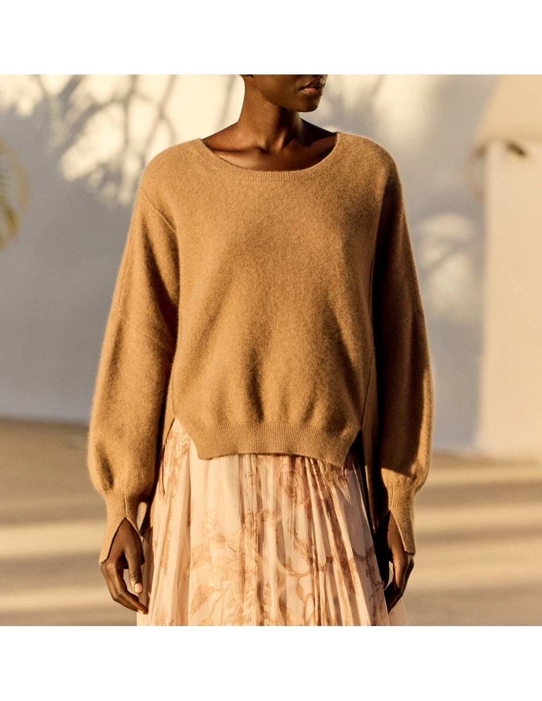 Pull tricoté dans un mélange précieux de laine de raccoon, cachemire et angora