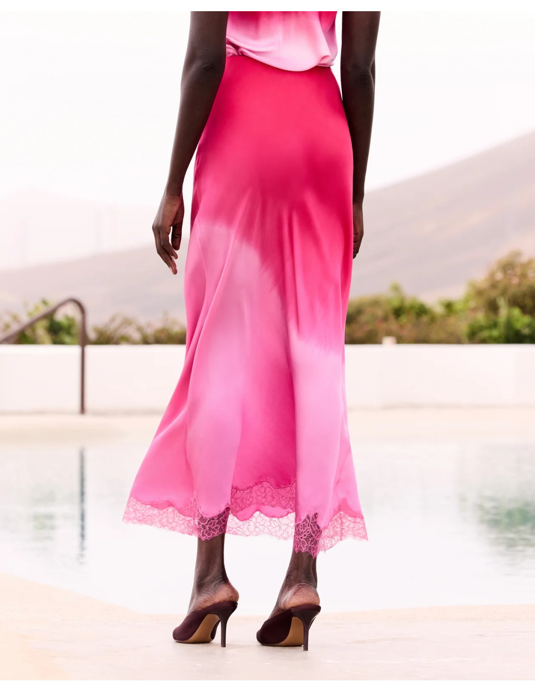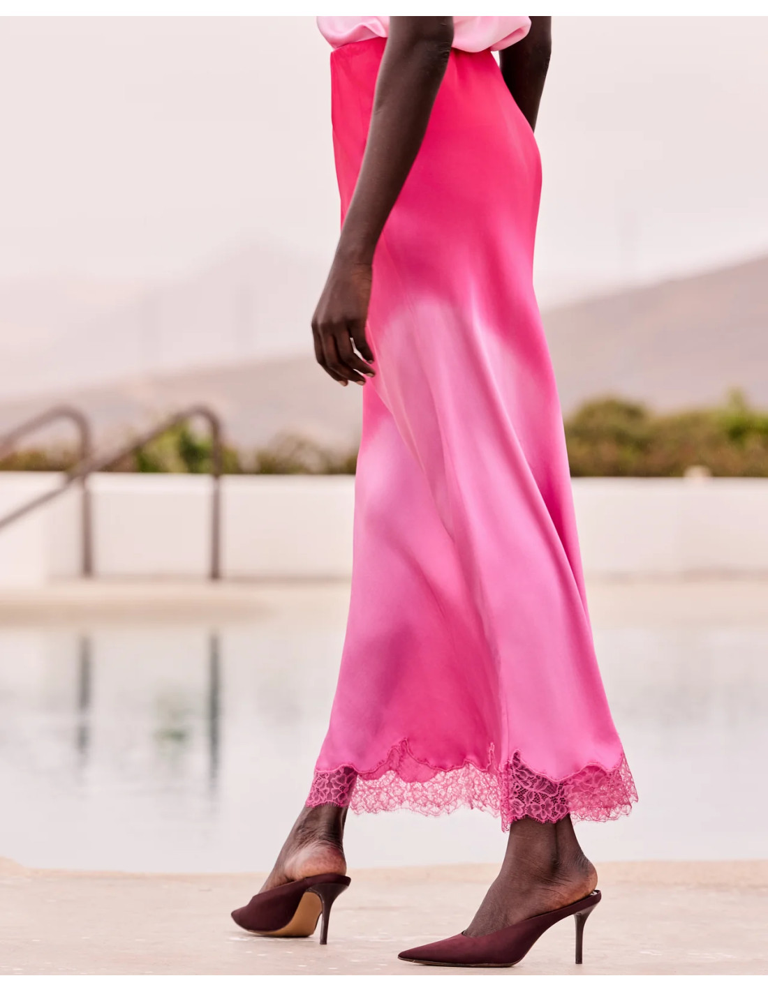 Fine dentelle ton sur ton ornant le bas de la jupe
