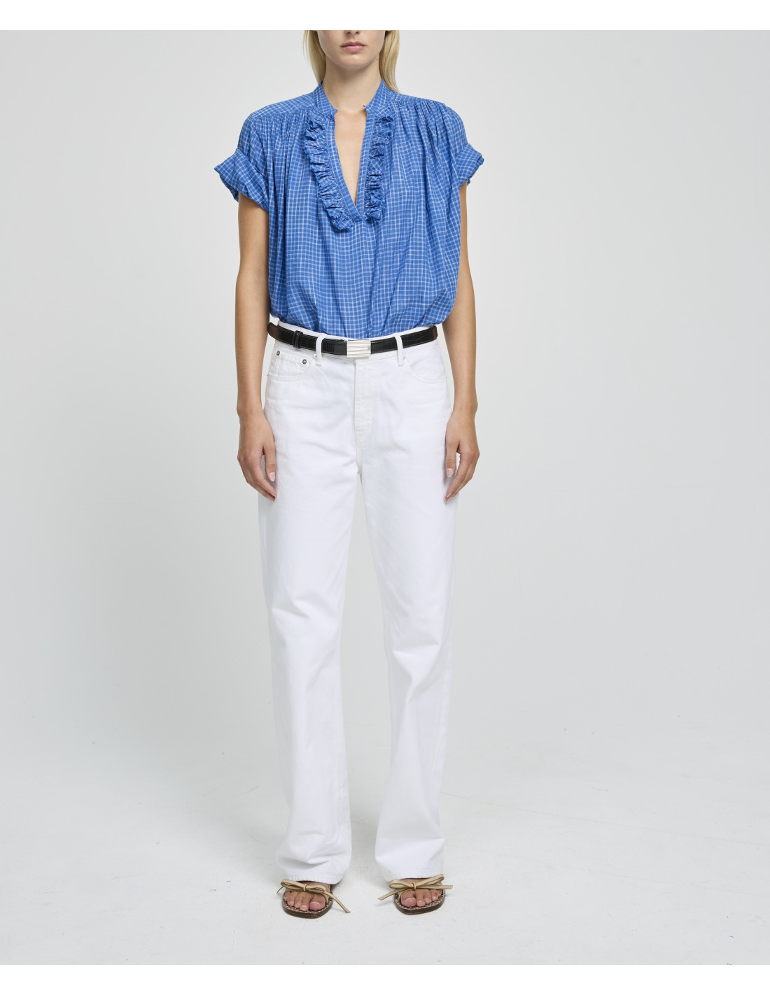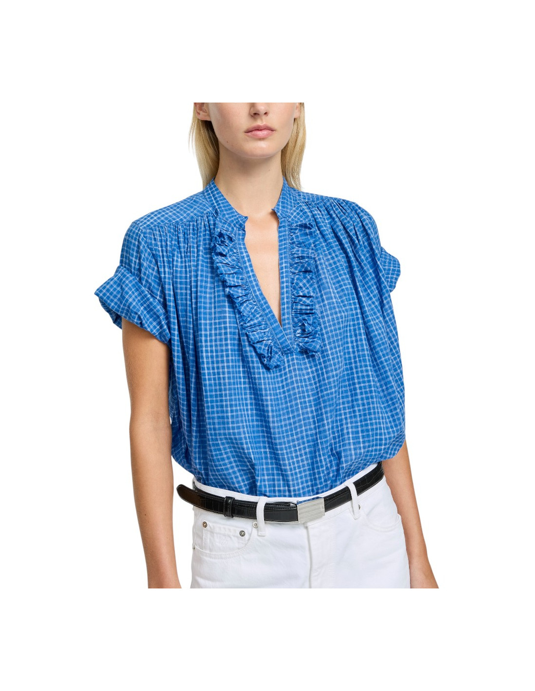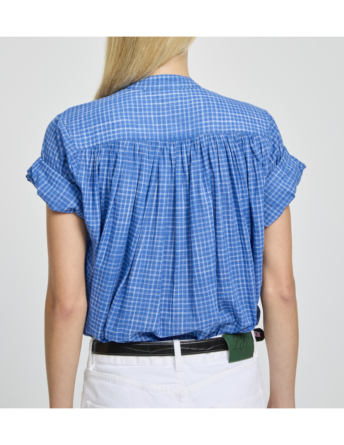 Blouse en coton à carreaux bleus