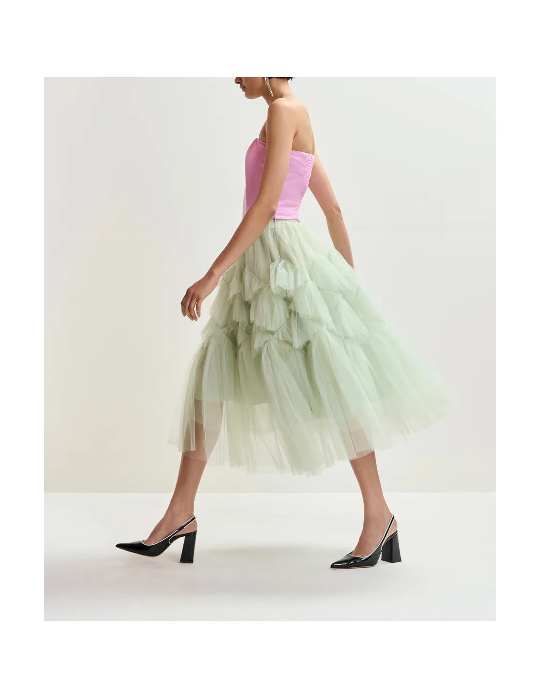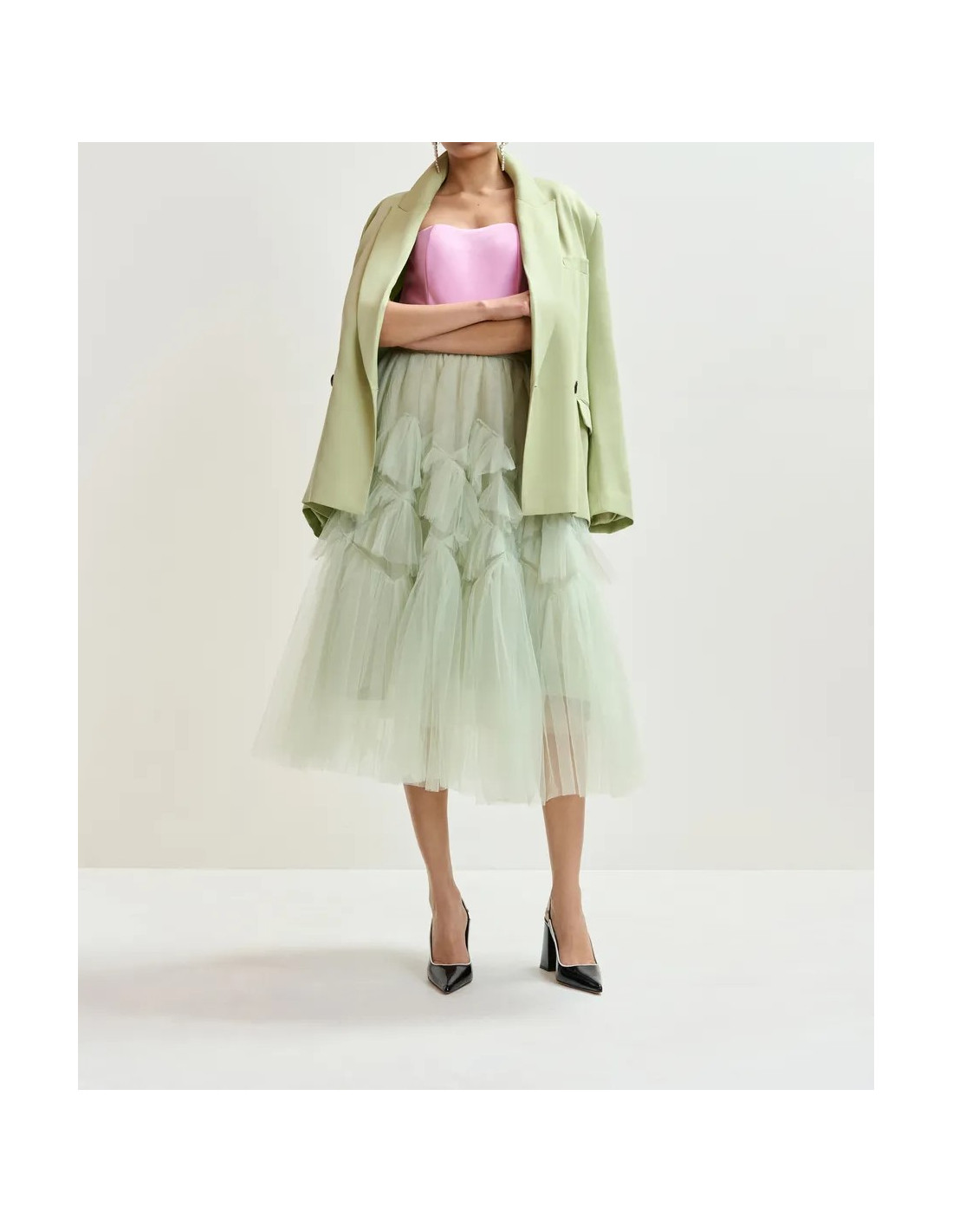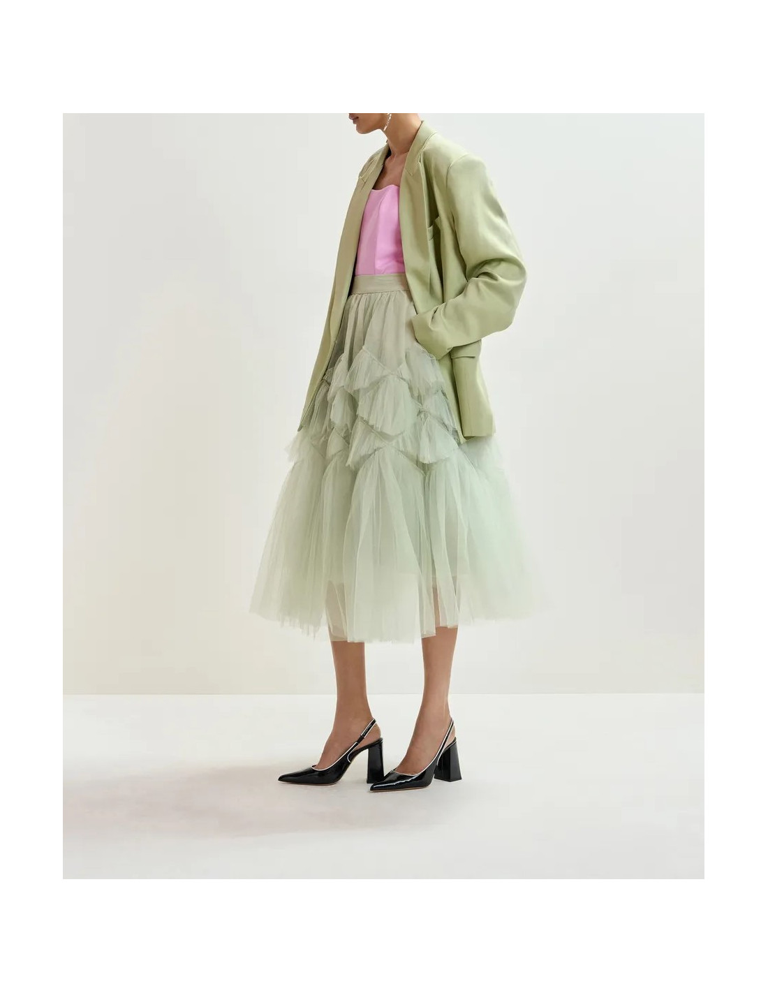 Jupe à volants en tulle vert clair