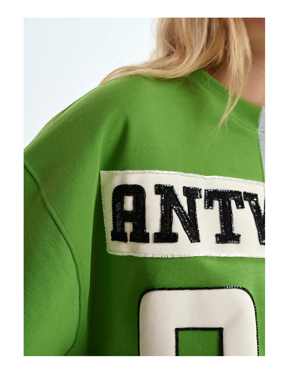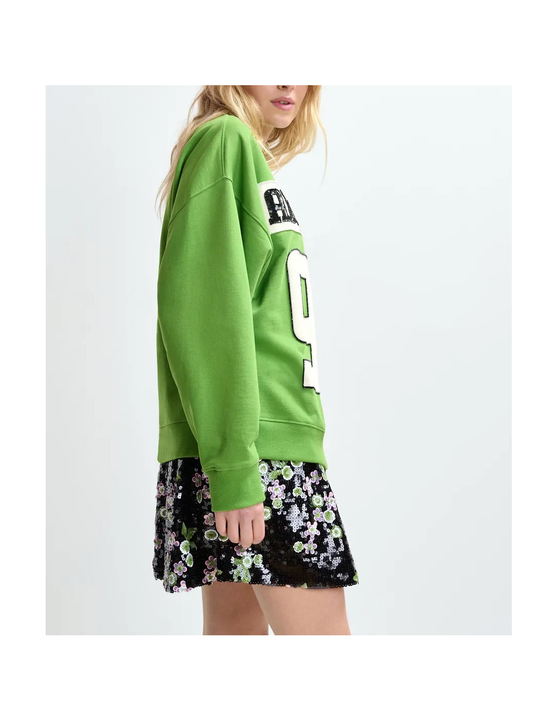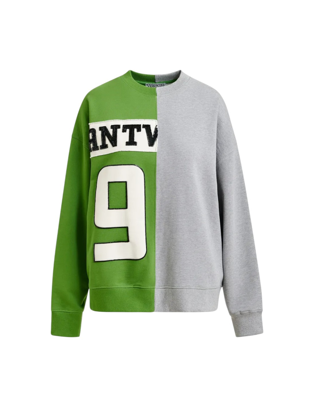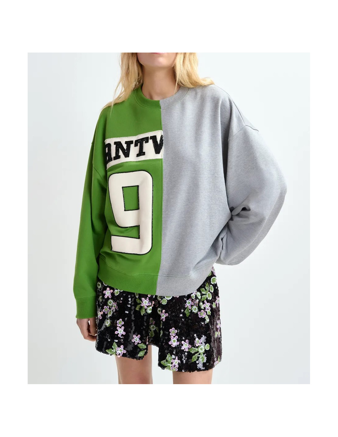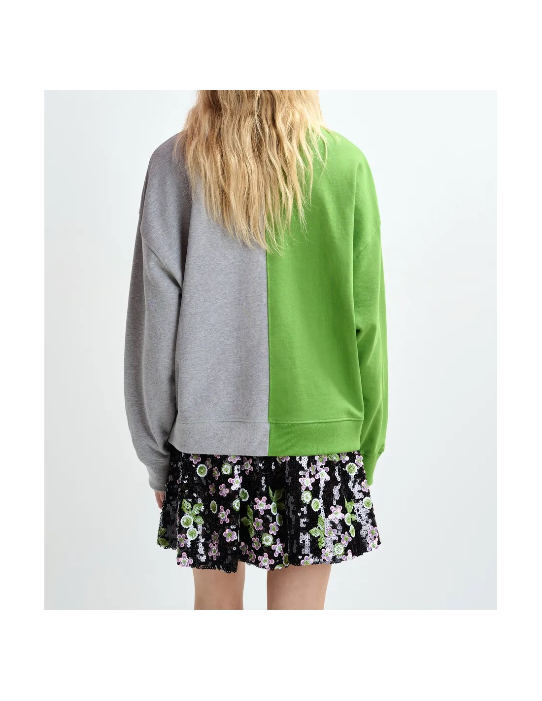 Sweatshirt en jersey de coton avec motif à deux empiècements gris et vert créant un contraste graphique