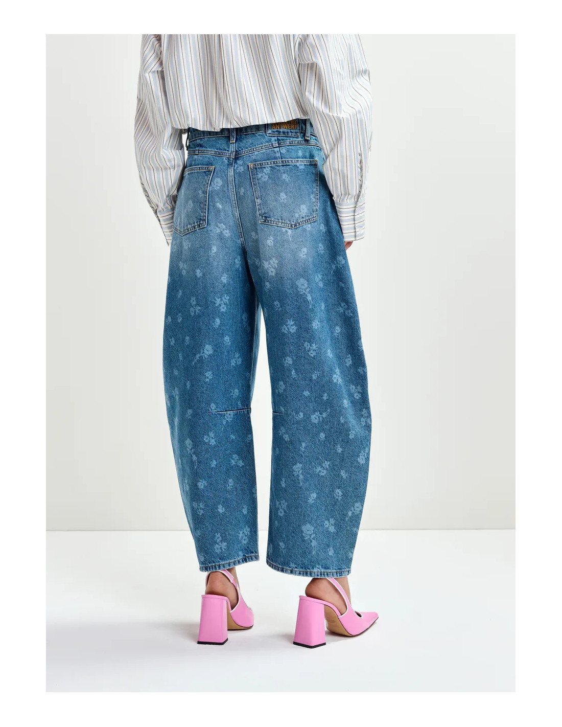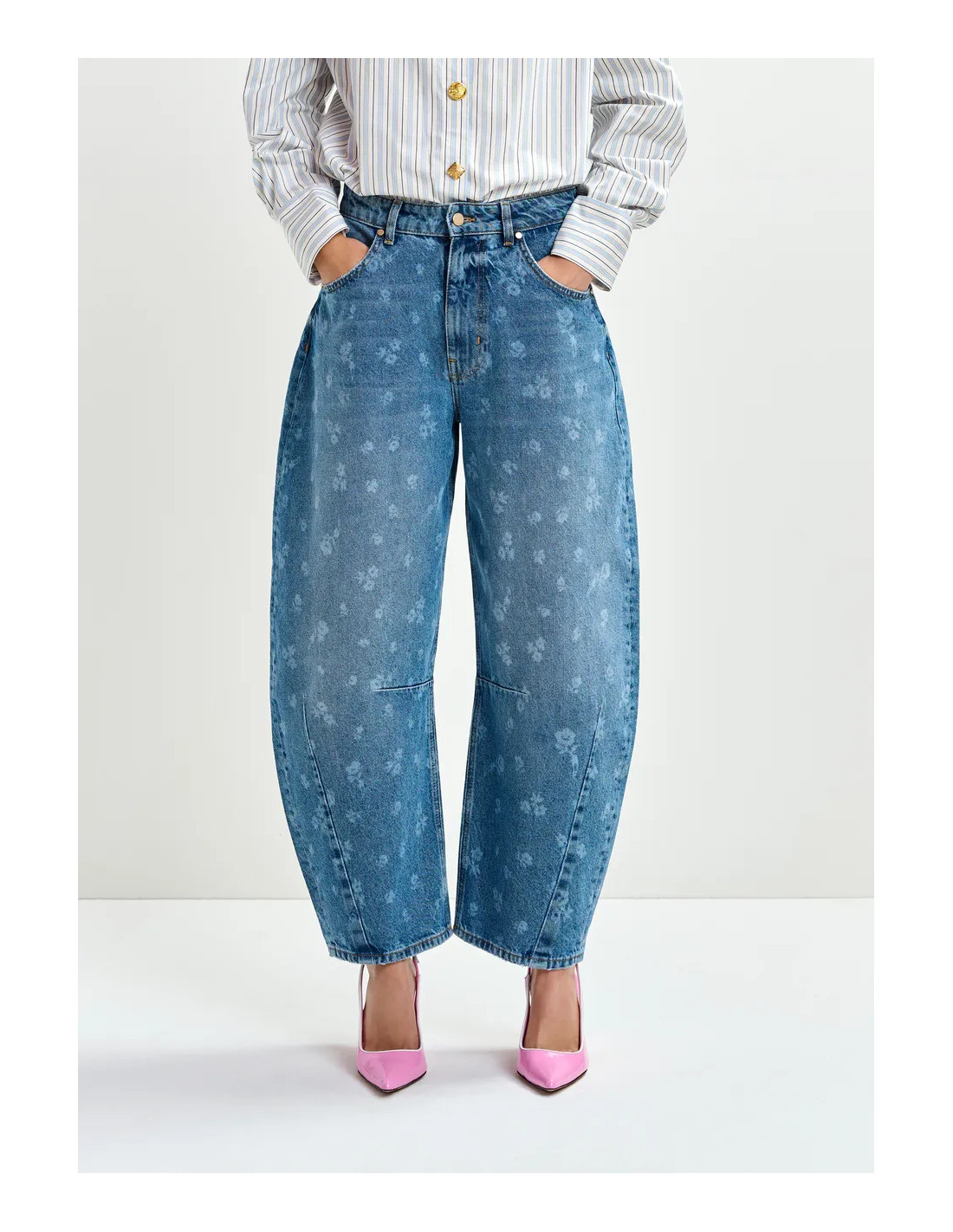 Jean barrel bleu imprimé fleuri