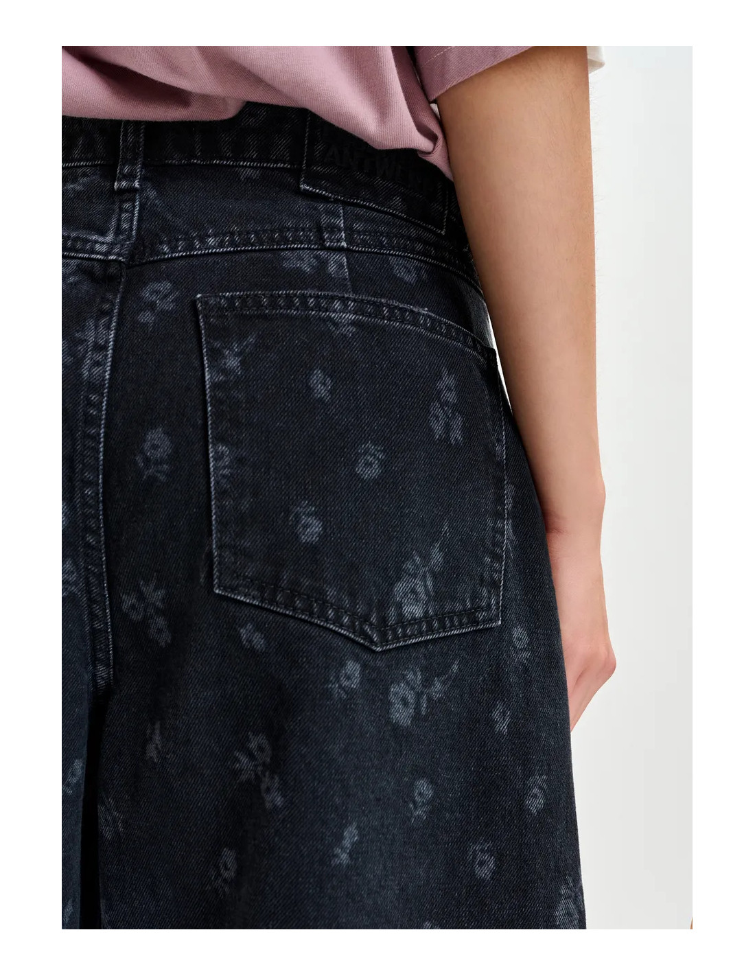 Jean noir imprimé de motifs fleuris