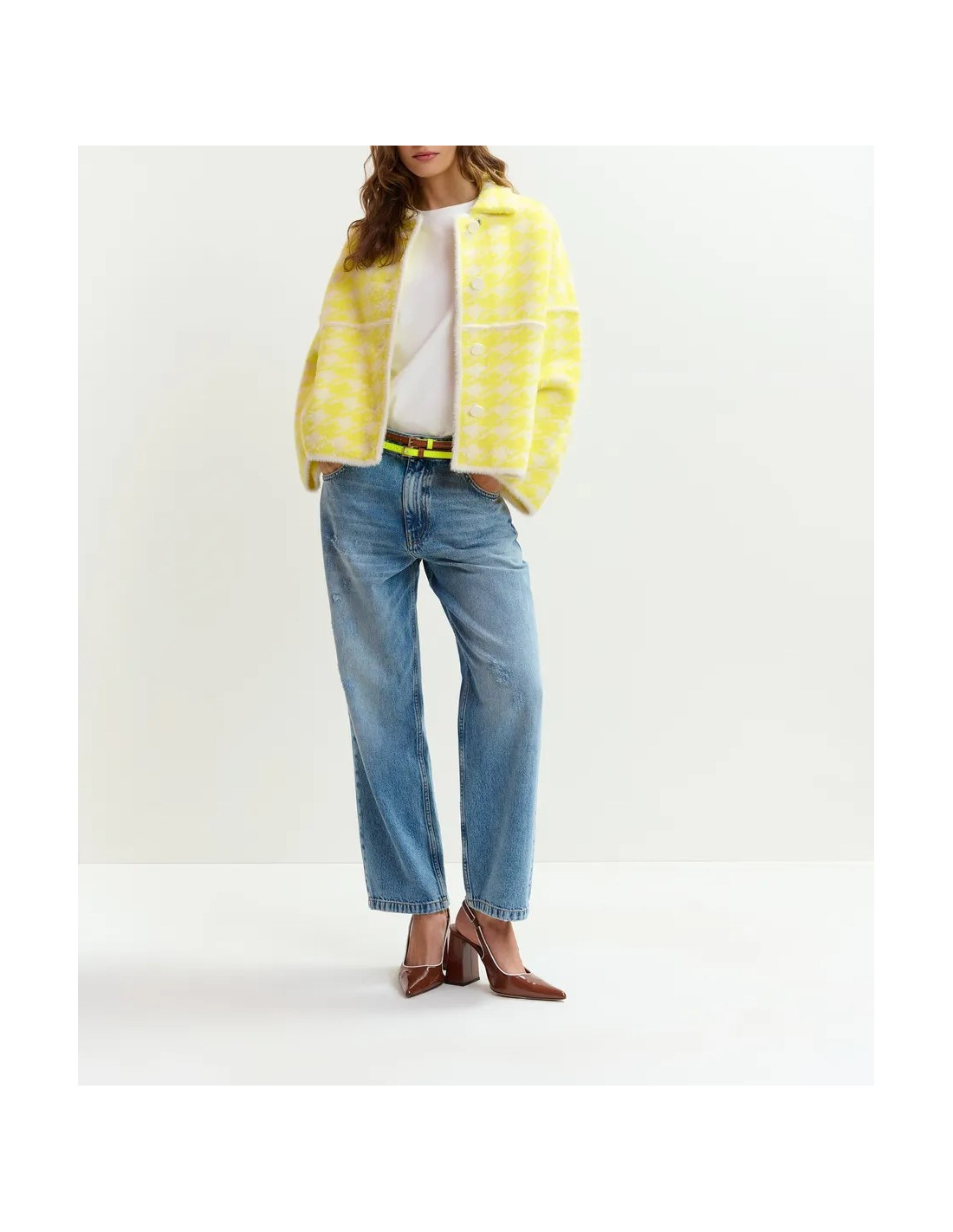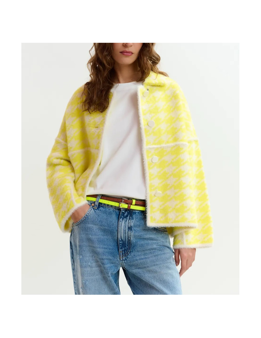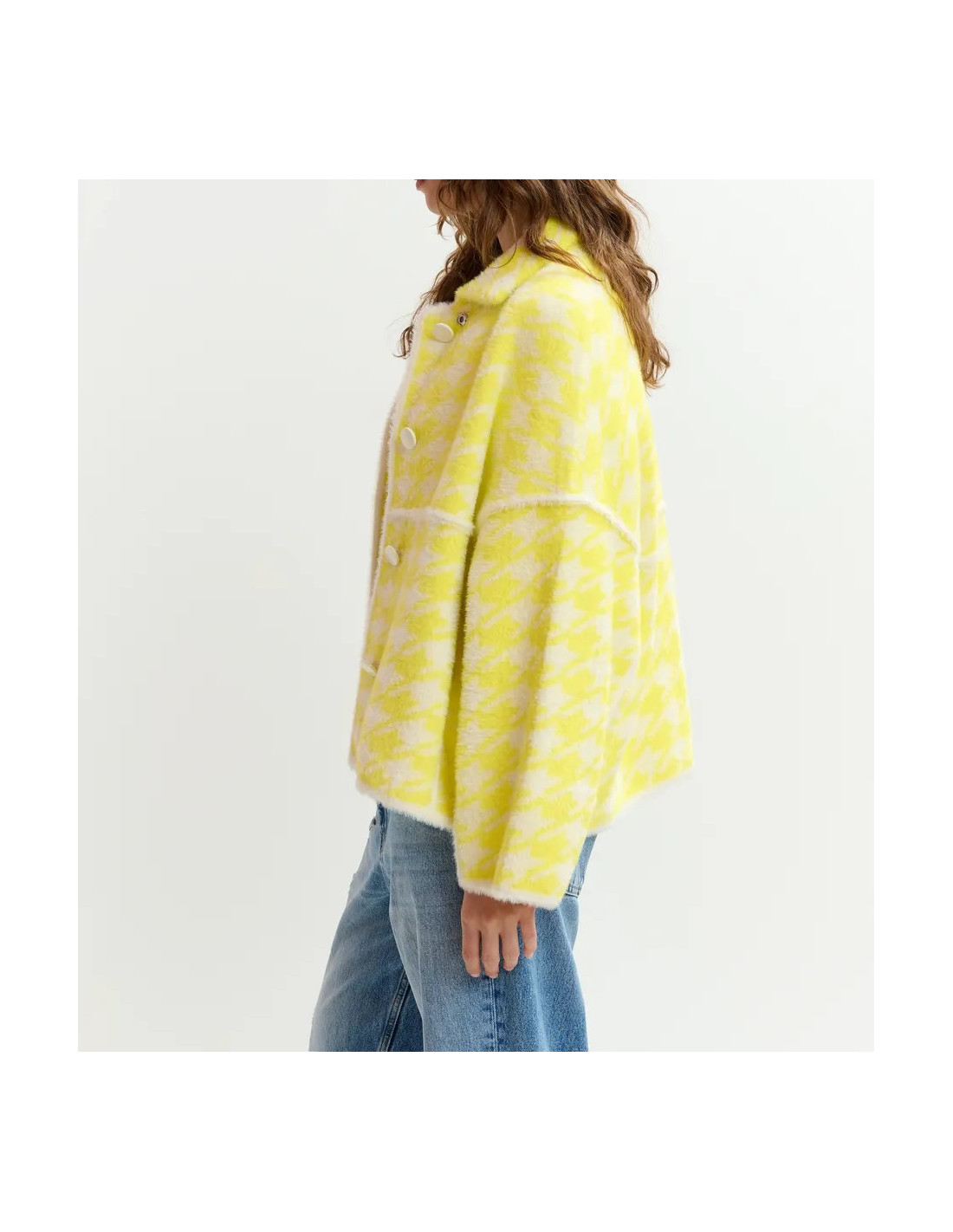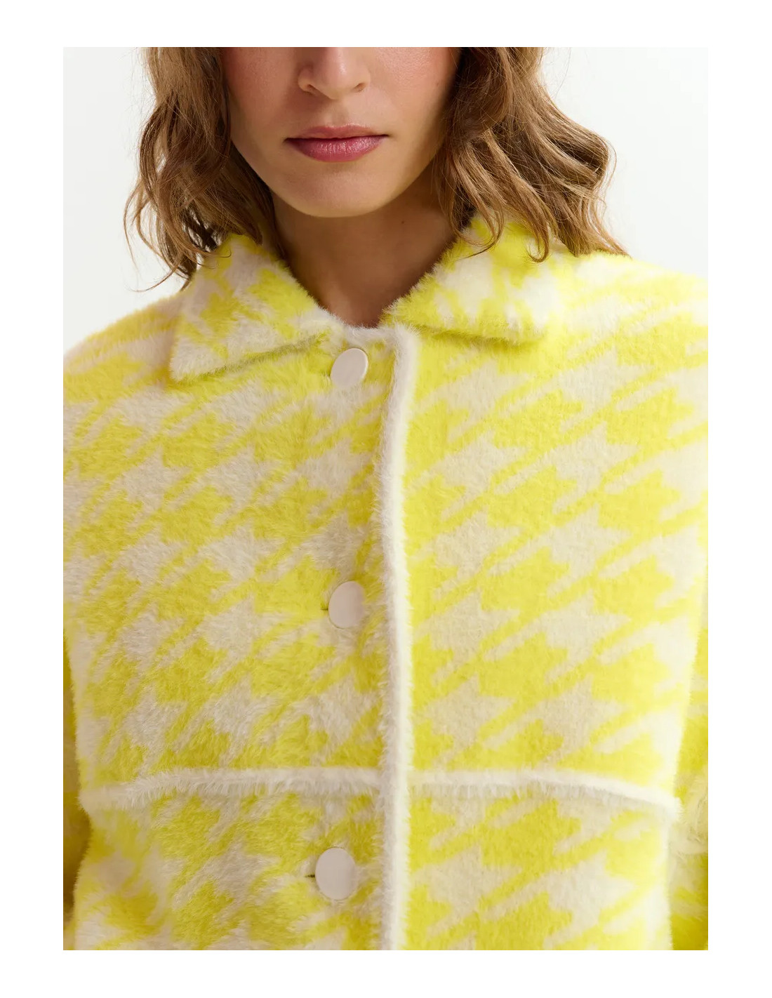 Cardigan confectionné dans une matière douce au motif pied-de-poule pour une touche graphique.