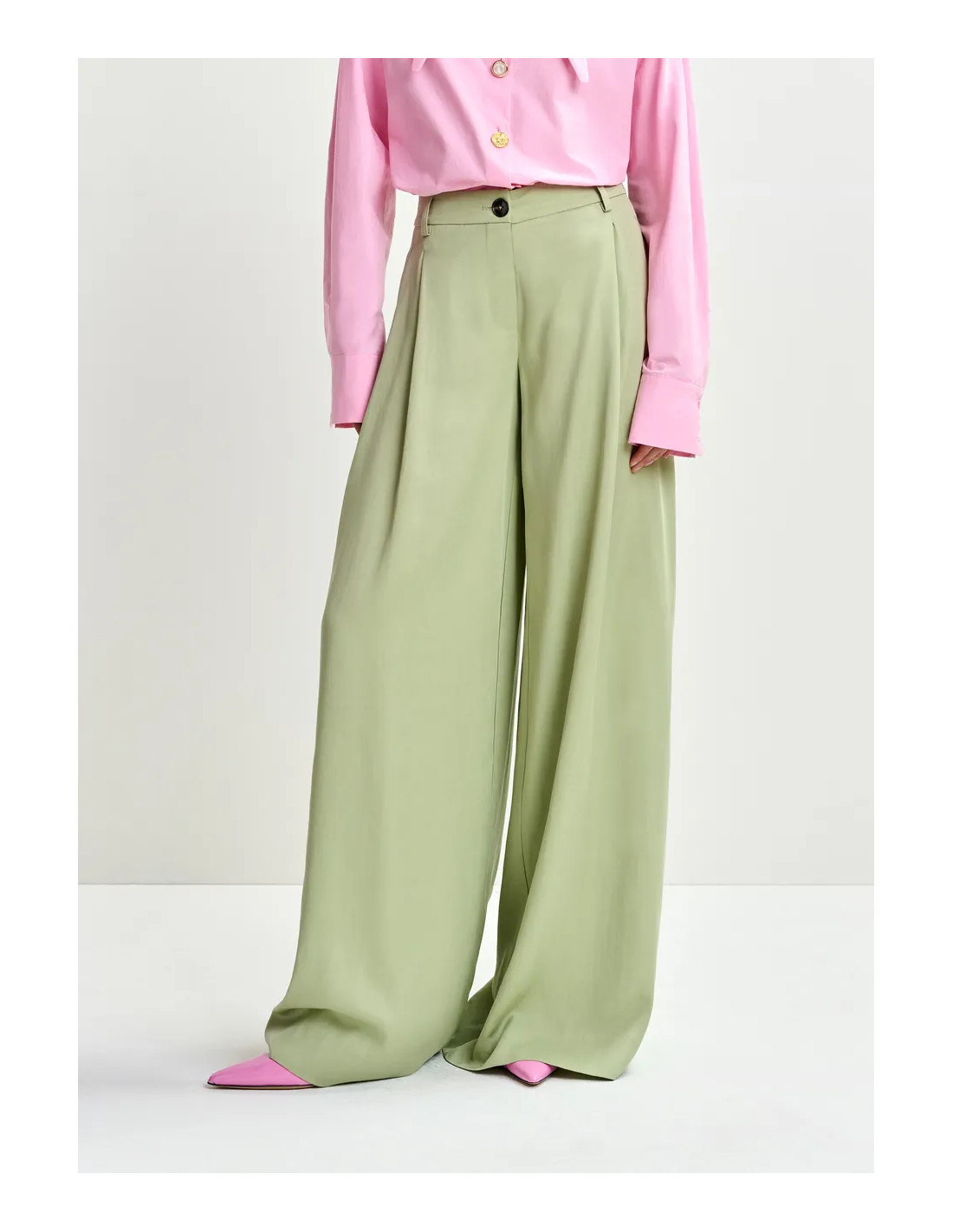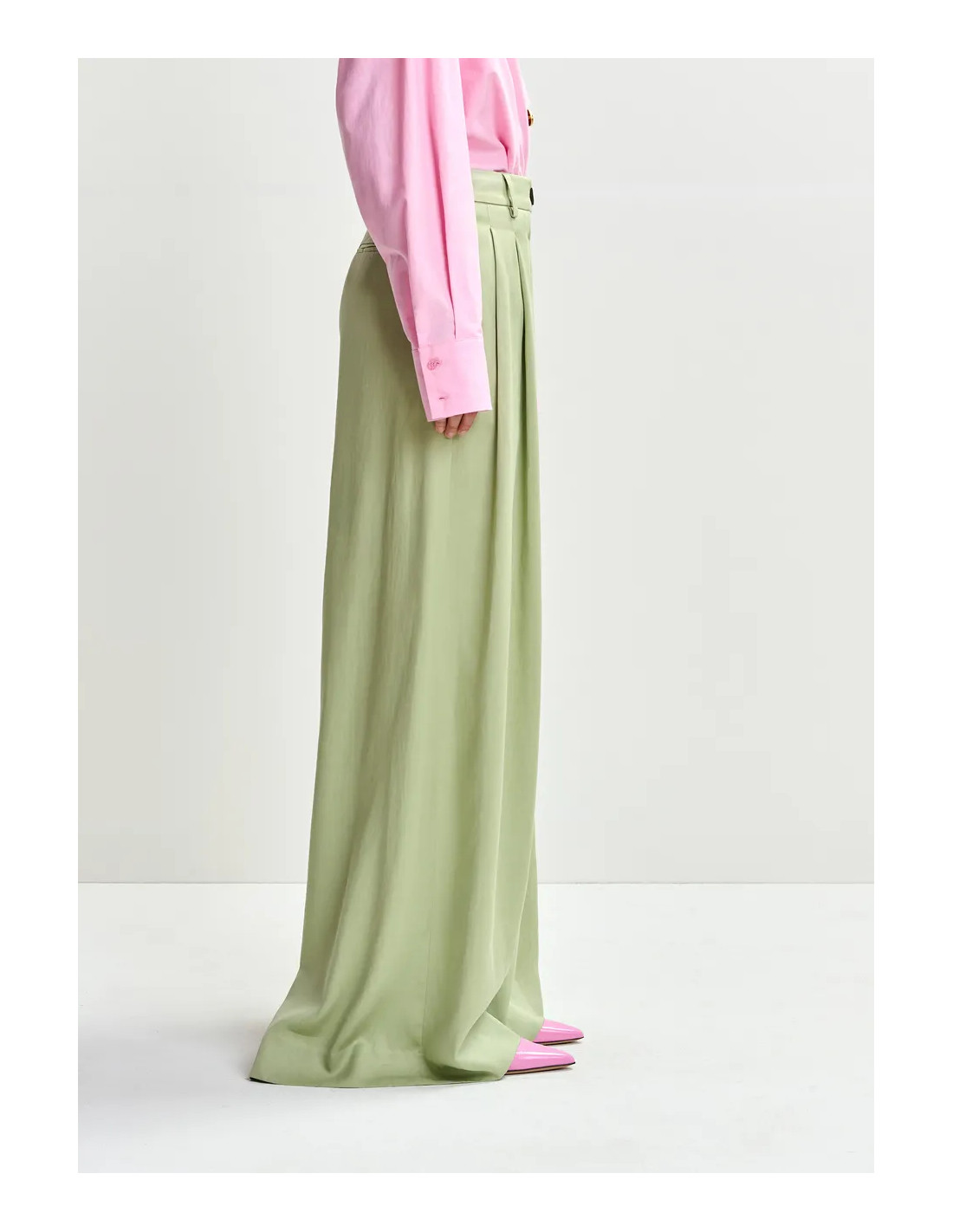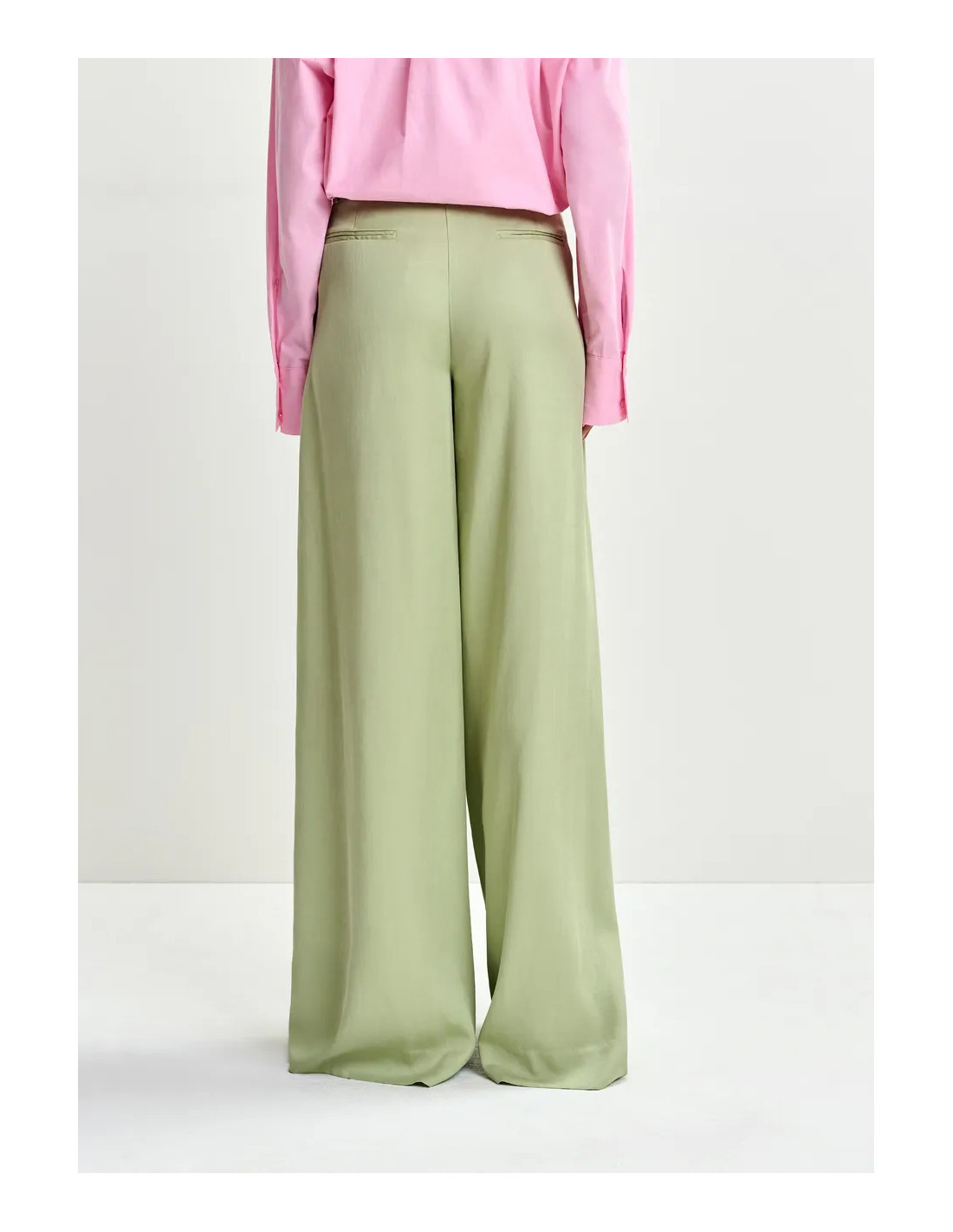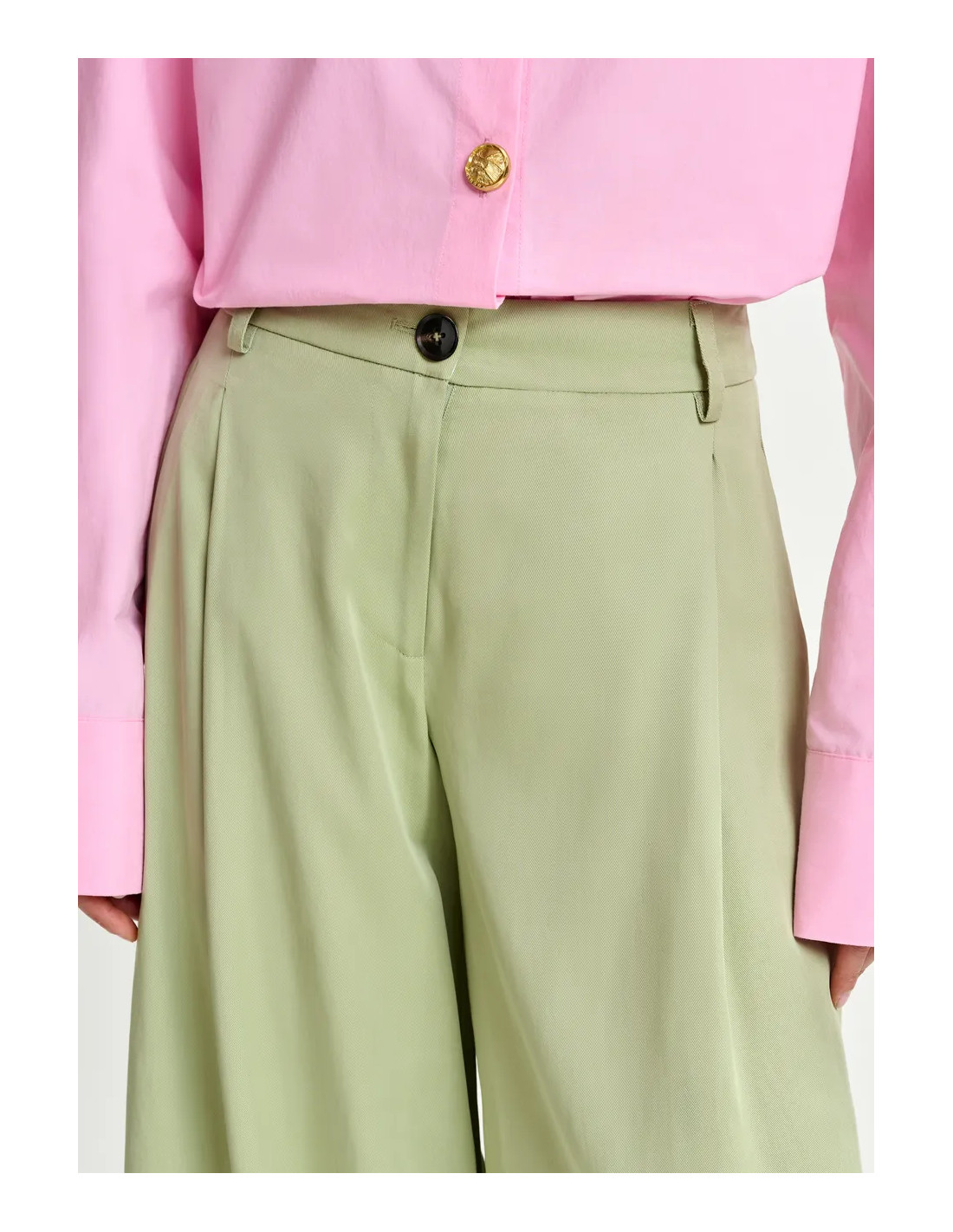 Pantalon taille haute et jambe large vert clair