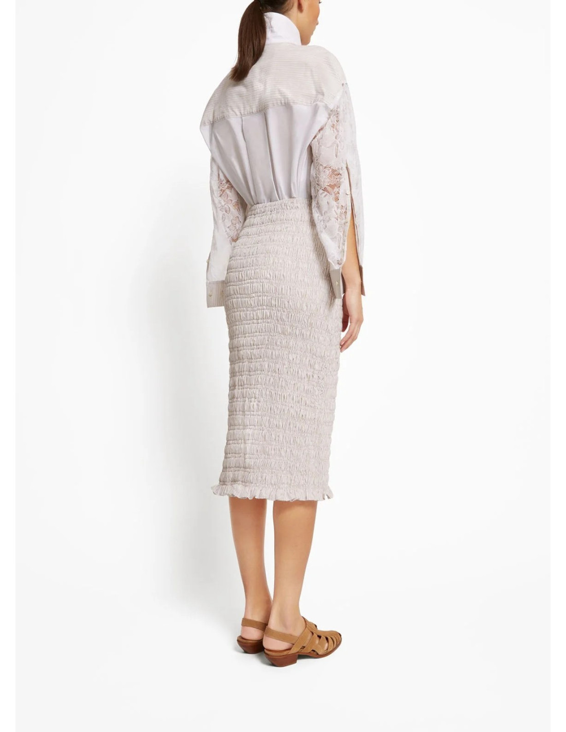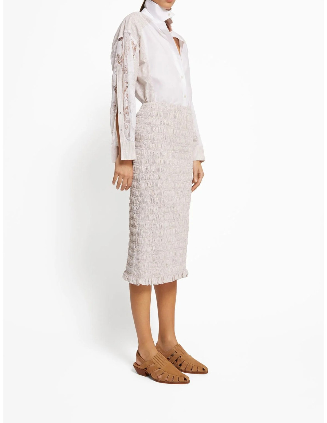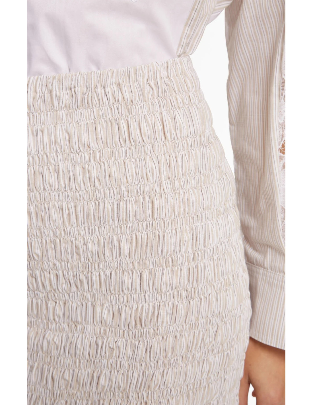 Jupe en coton smocké beige