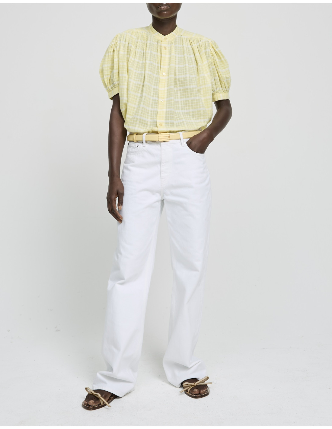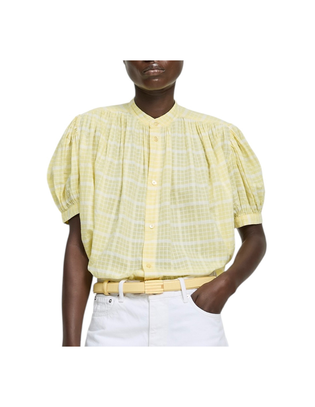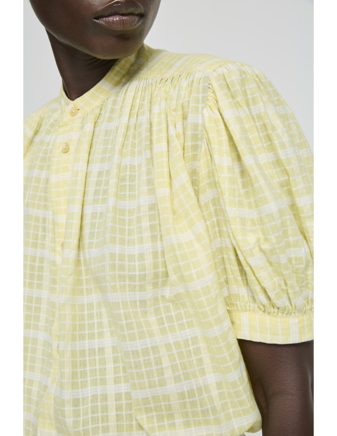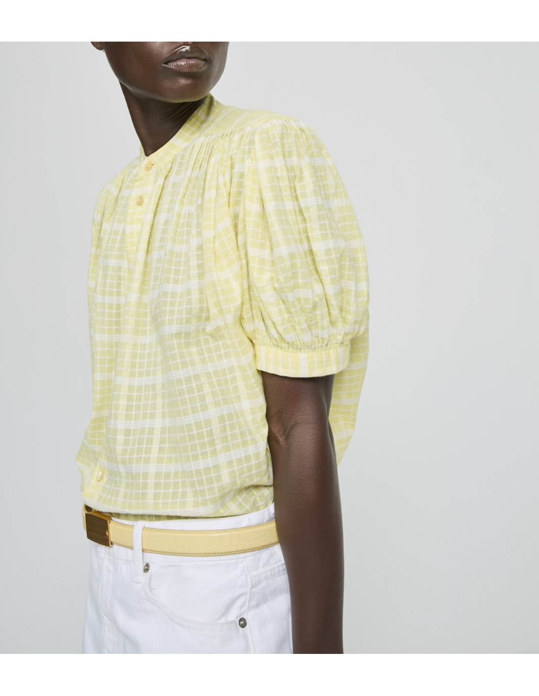 Blouse en coton à carreaux jaunes et blancs