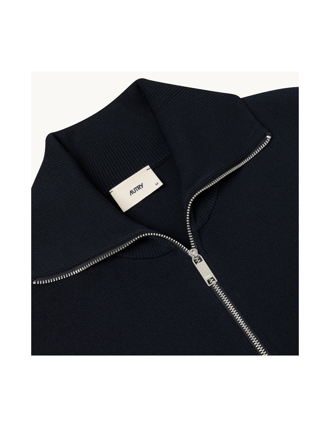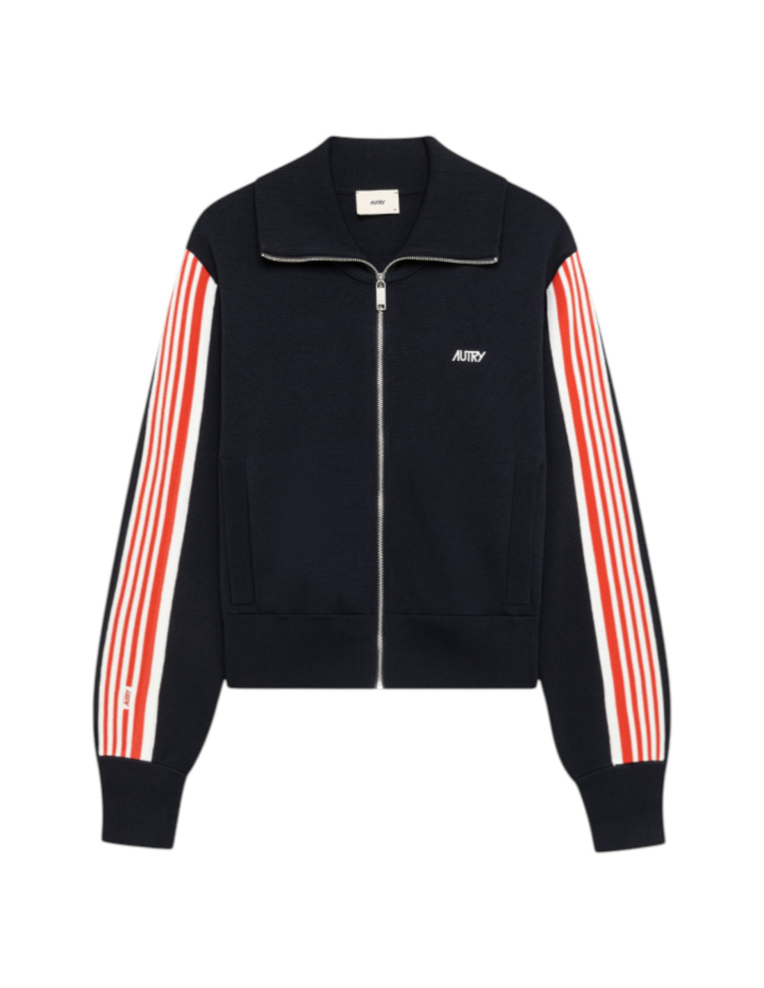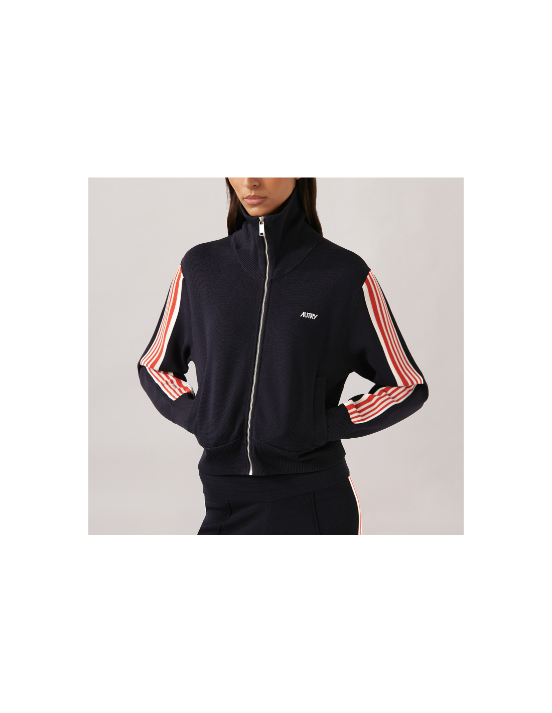 Veste en maille de viscose bleu marine avec bandes latérales à rayures contrastées