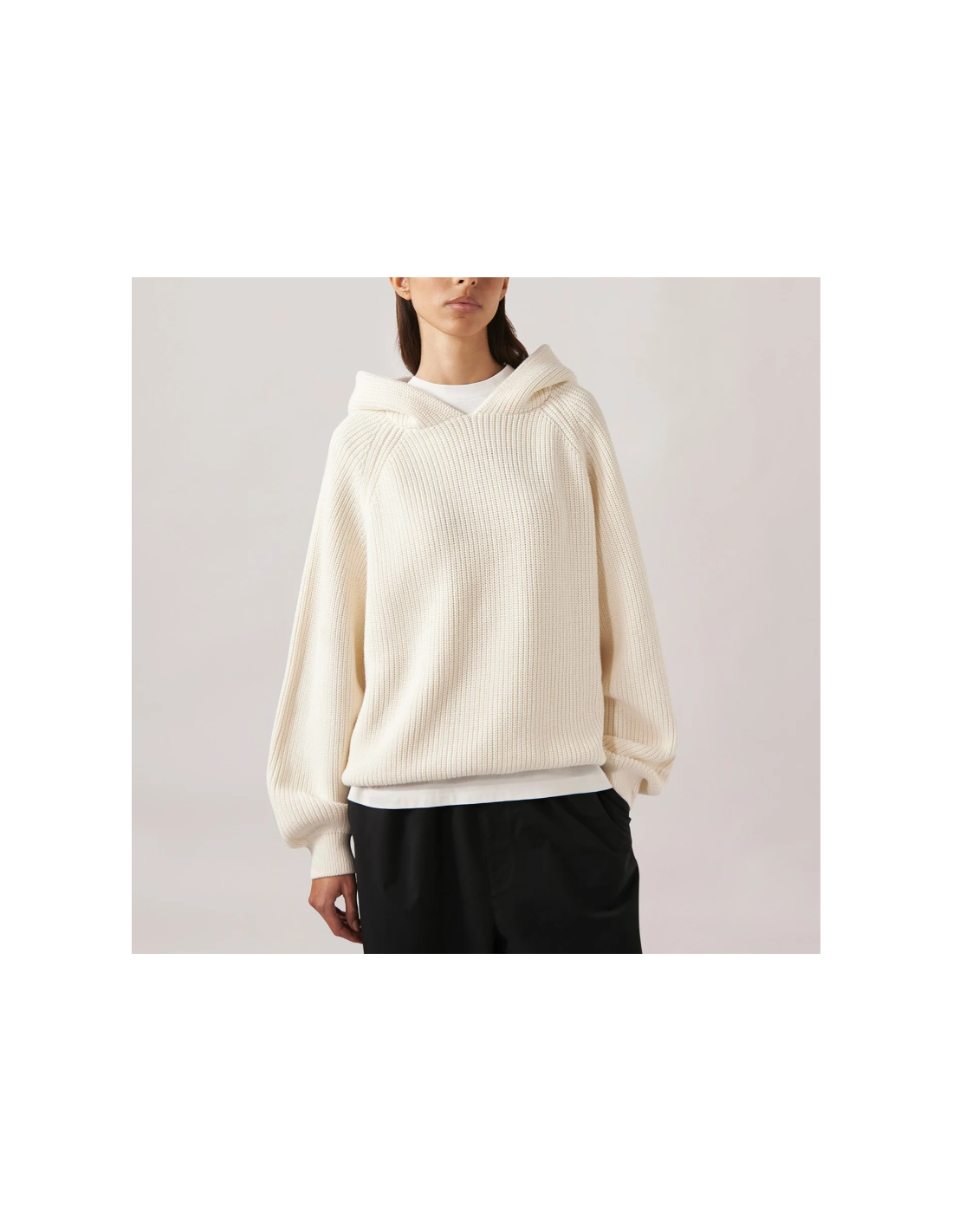 Sweat à capuche en maille écru