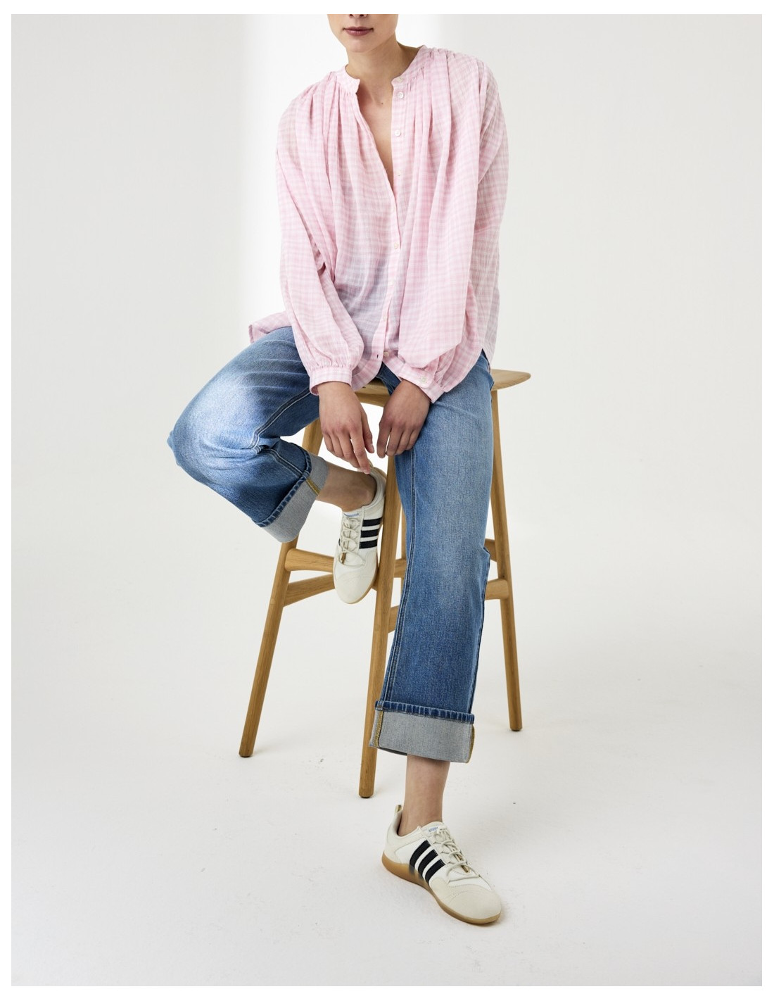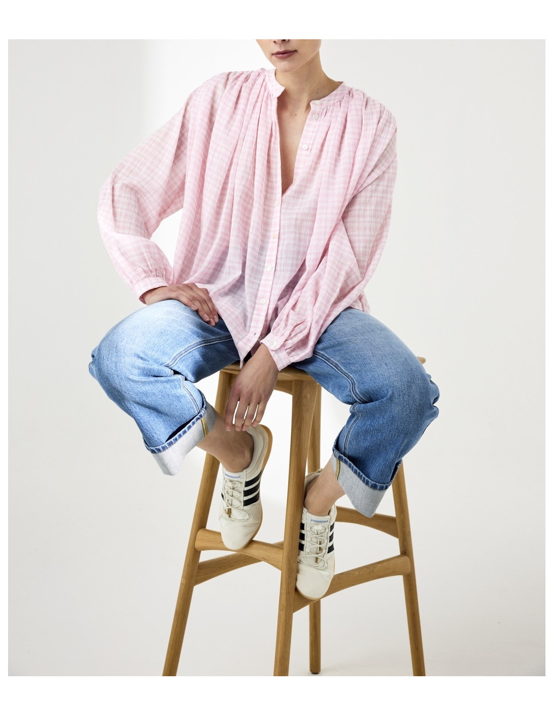 Blouse en coton rose à carreaux