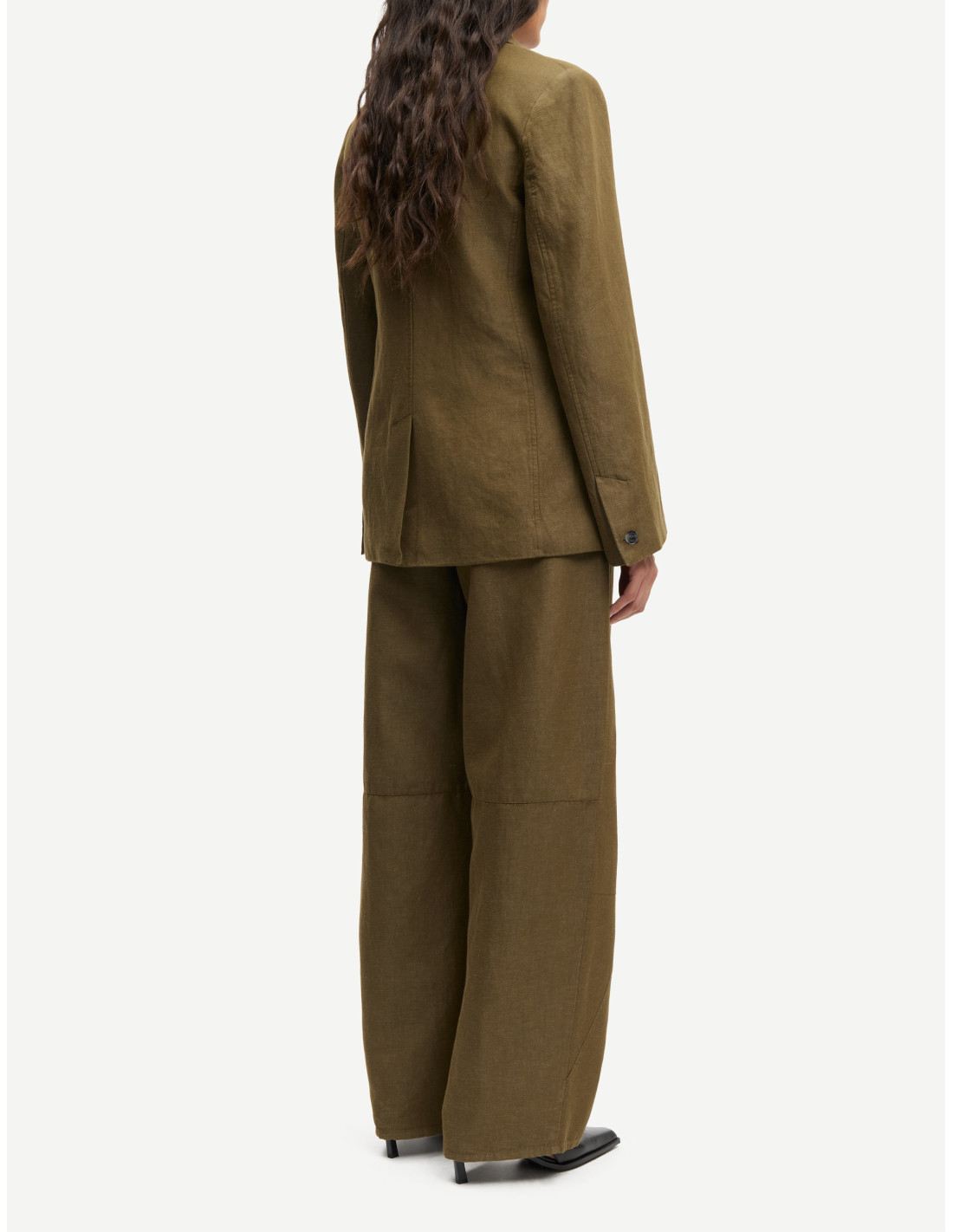 Pantalon taille mi-haute, coupe ample et jambe galbée