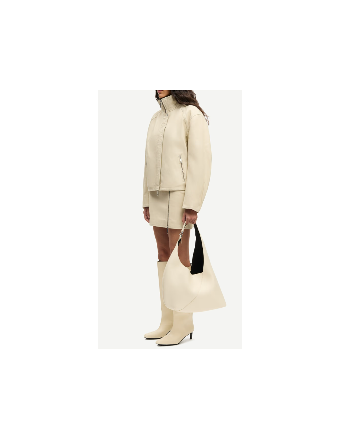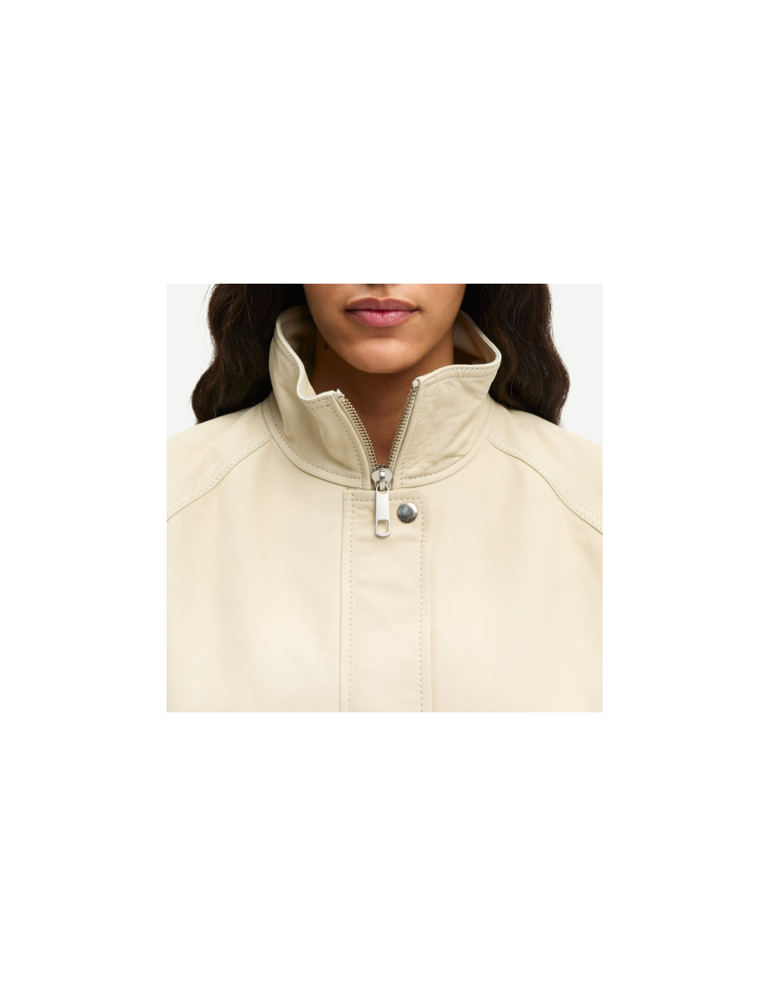 Blouson en cuir à la coupe régulière et silhouette boxy