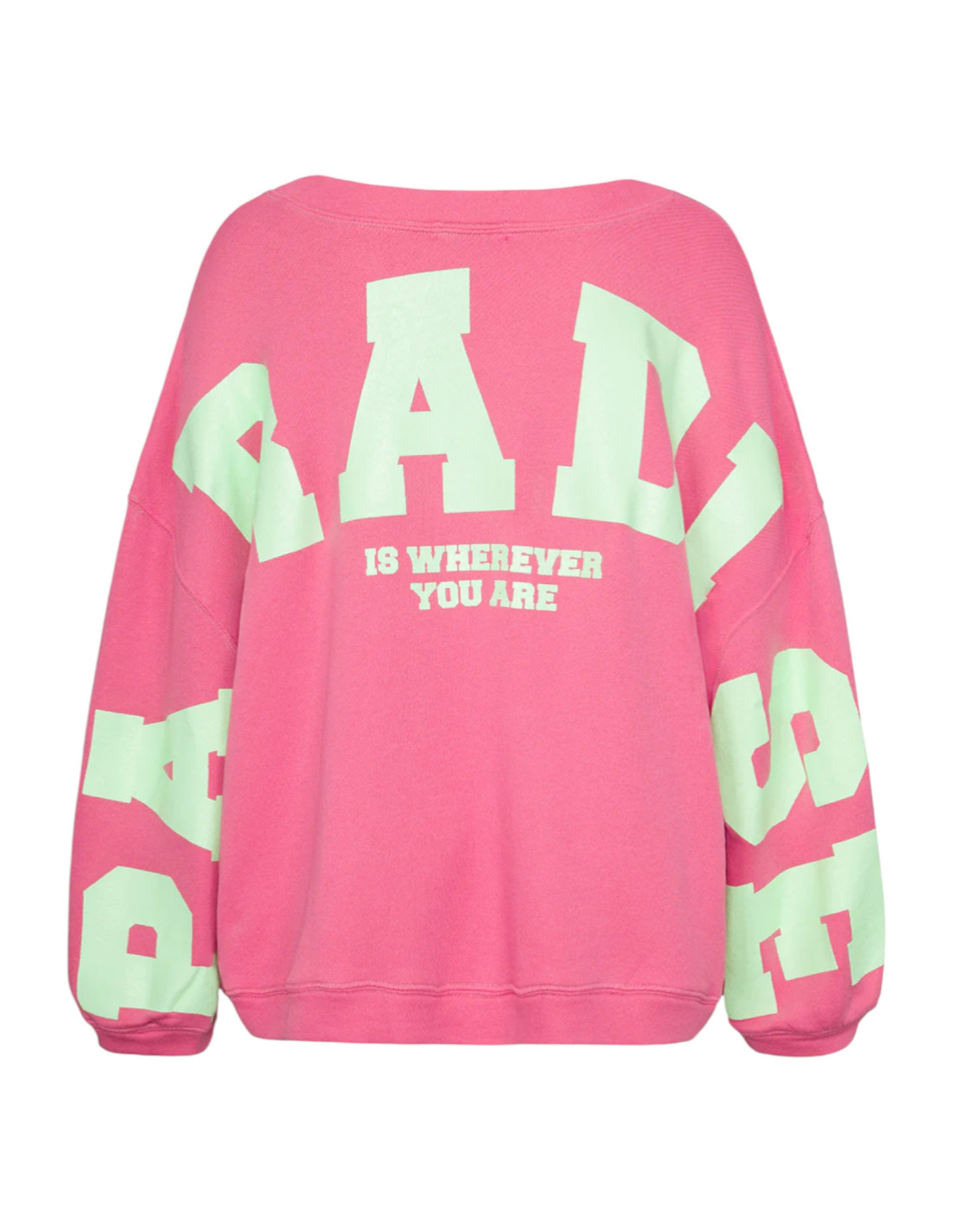 Sweatshirt oversize rose vif avec imprimé SKY PARADISE dans le dos et sur les manches vert lime