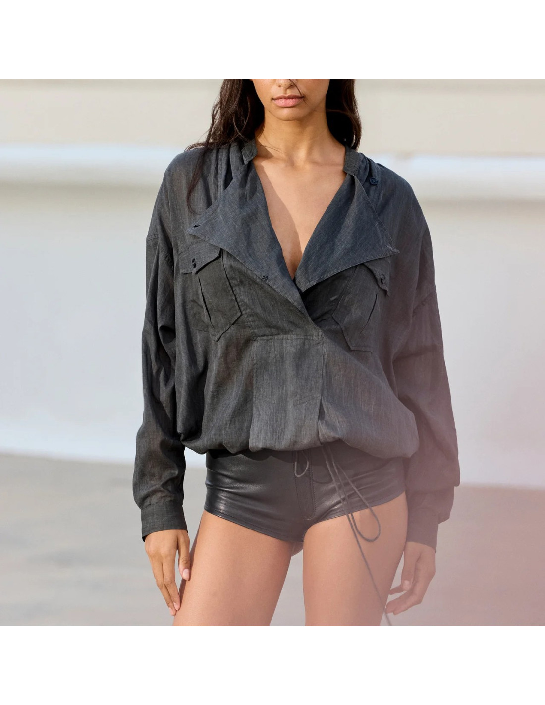 Blouse oversize en coton pigment dye légèrement transparent