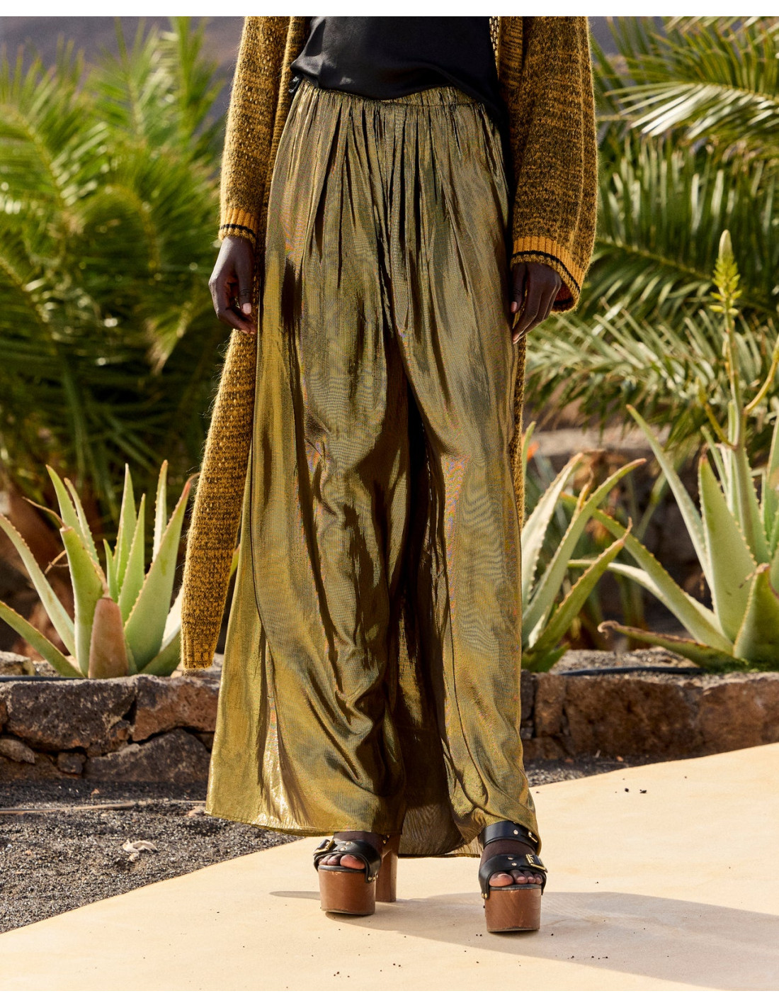 Pantalon large en viscose lurex charcoal