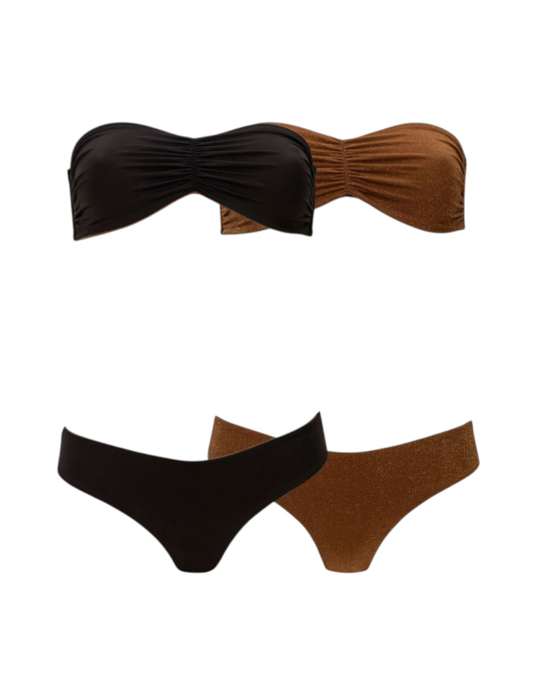 Maillot de bain 2 pièces réversible, tissu mat et tissu scintillant, coloris Ganache/Wood Lurex