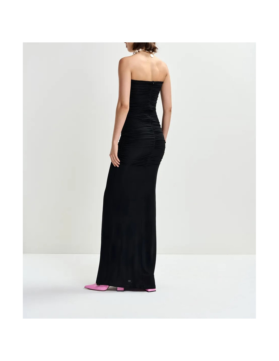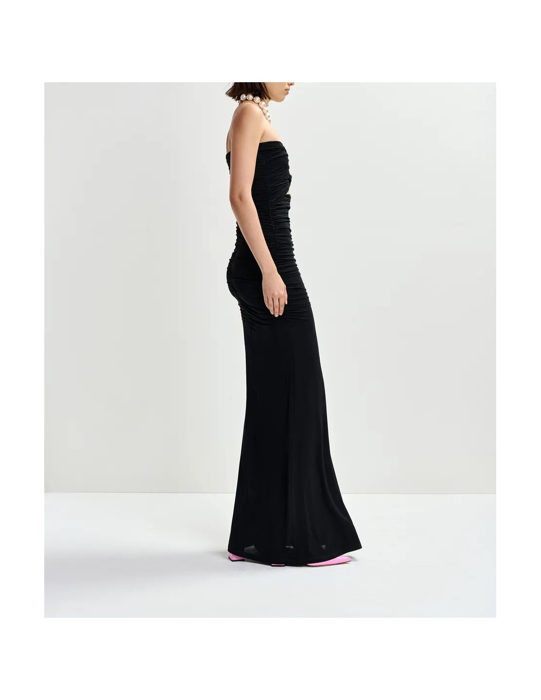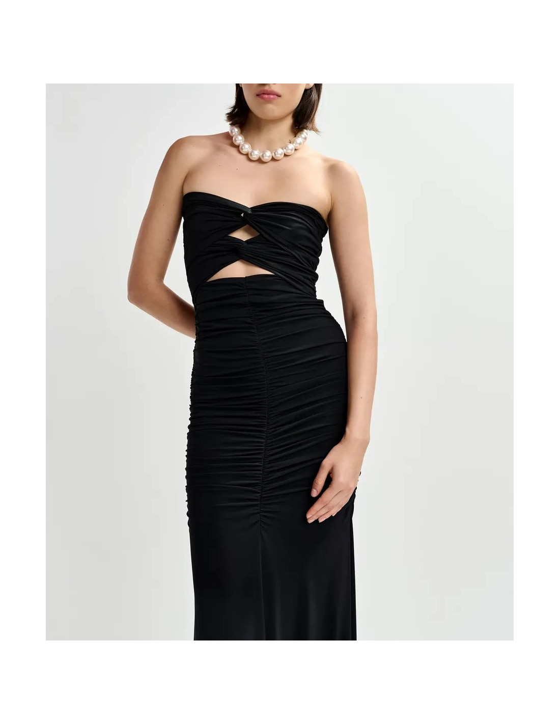 Robe longue bustier avec découpes sur le devant et fronces pour un effet scuplté