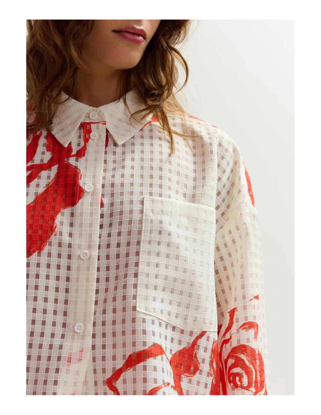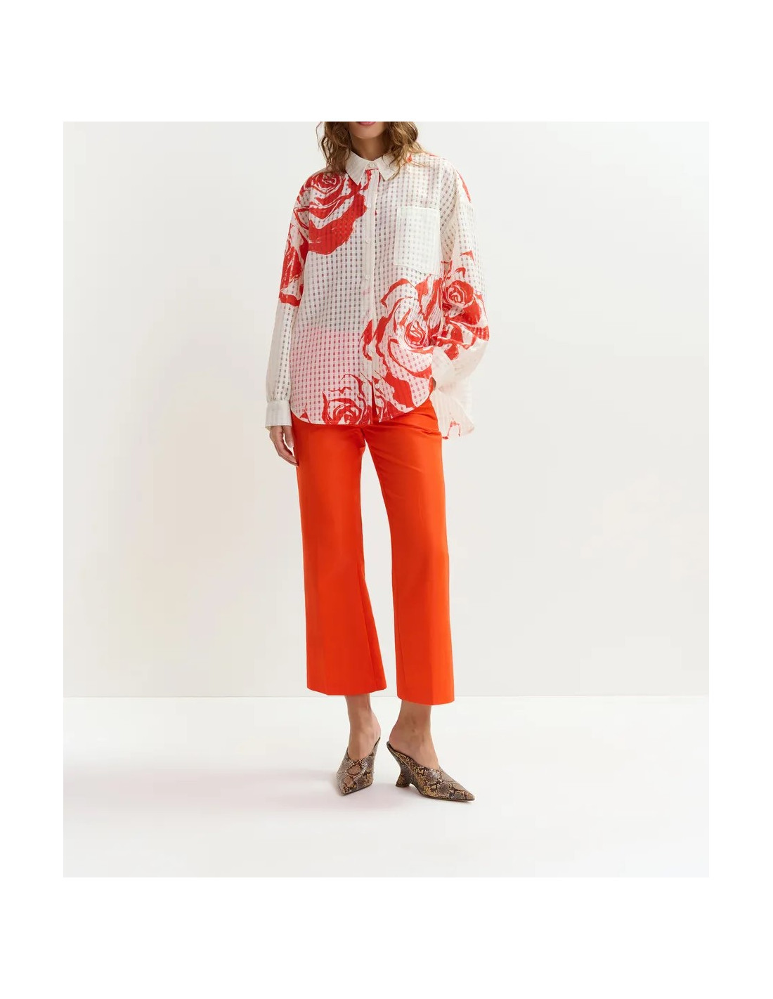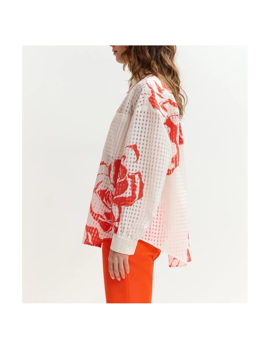 Chemise oversize blanc cassé à motif floral rouge orangé