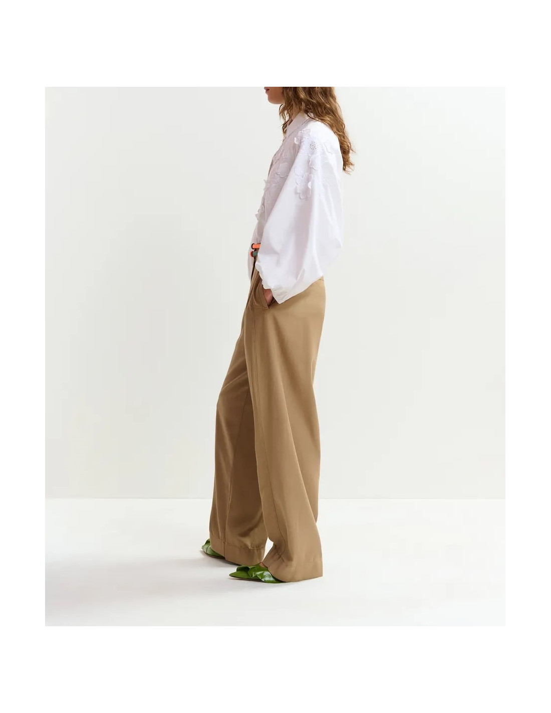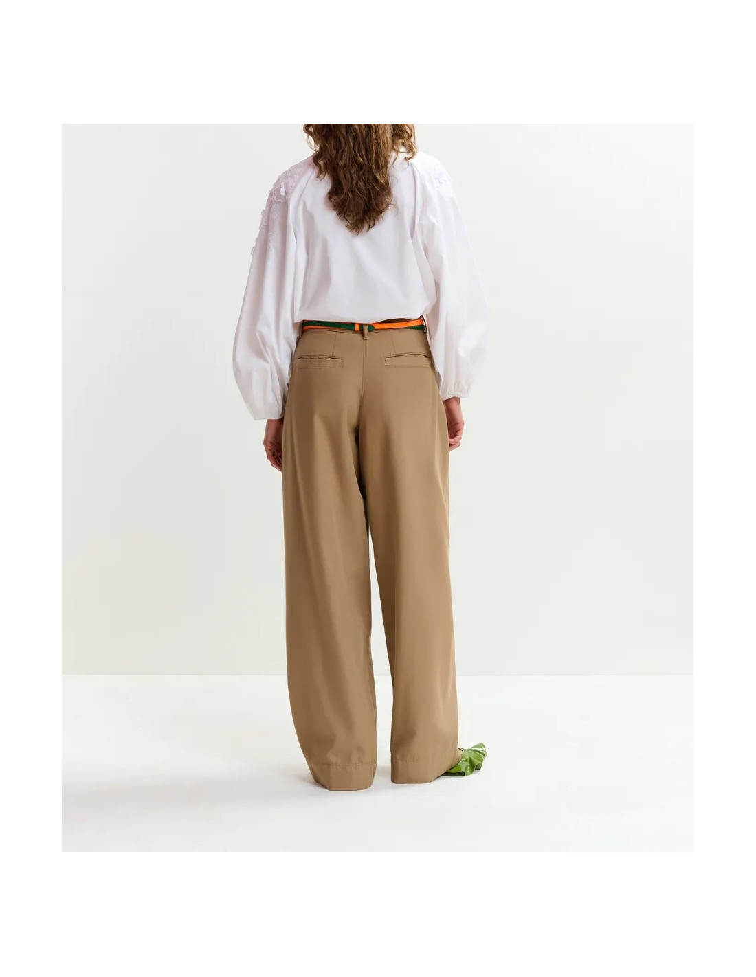 Pantalon large en coton brun clair