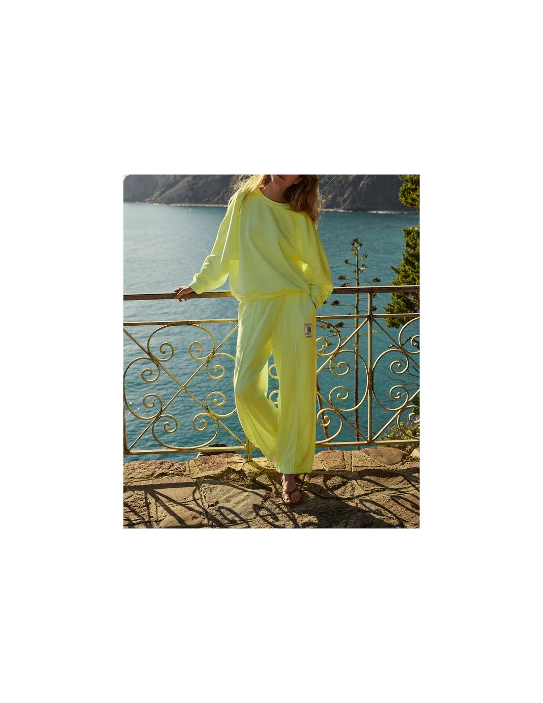 Pantalon de jogging oversize jaune avec étiquette imprimée sur la cuisse