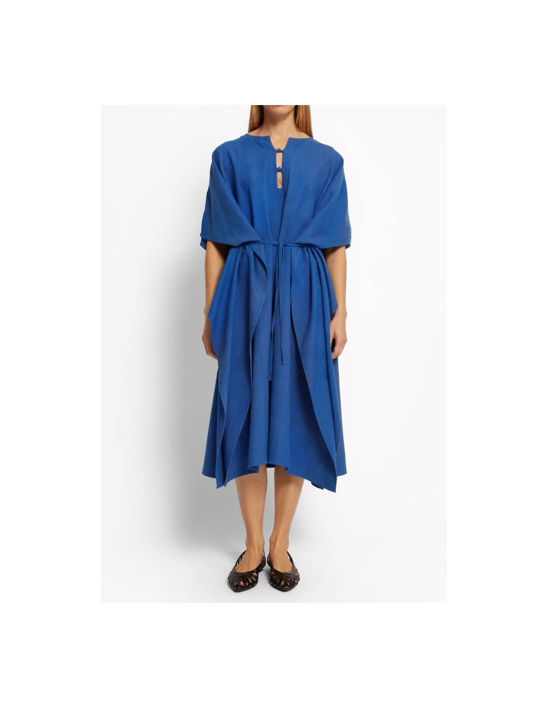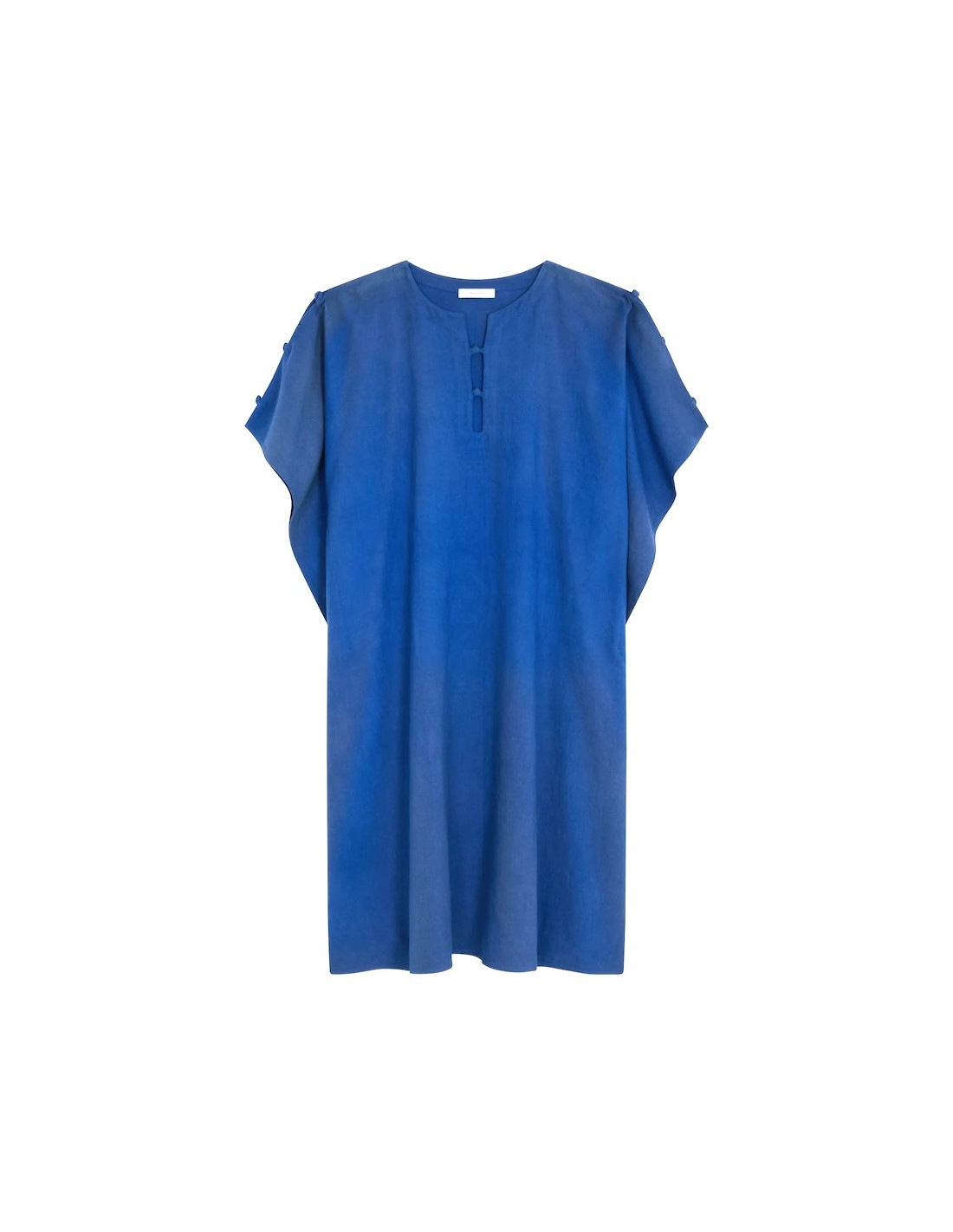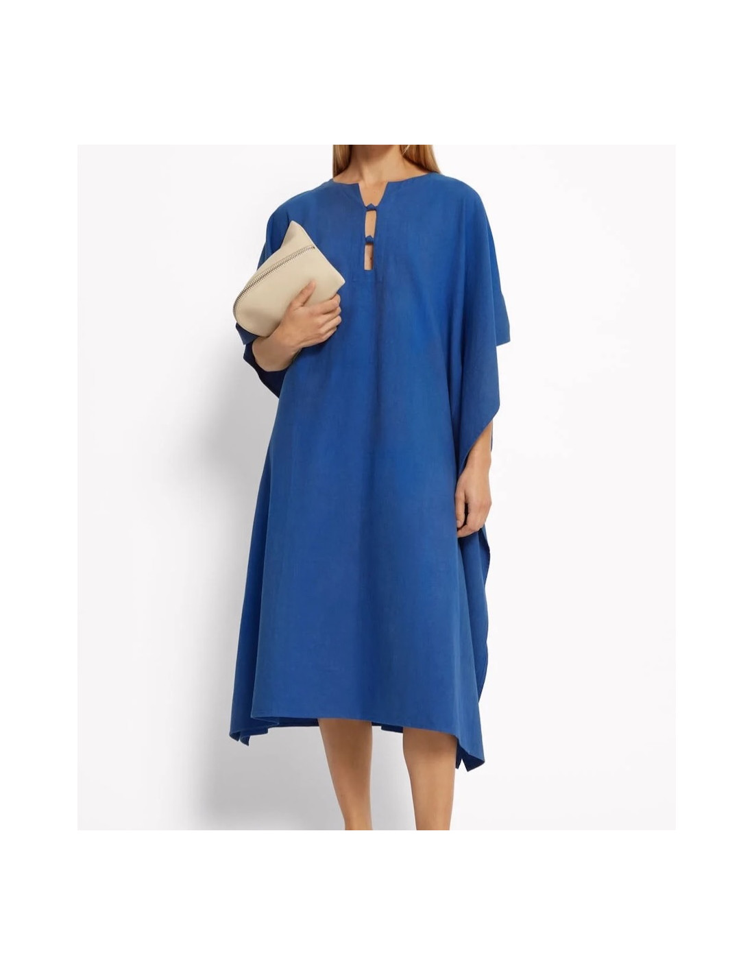 Robe caftan en coton et lin modele TWINS coloris bleu.