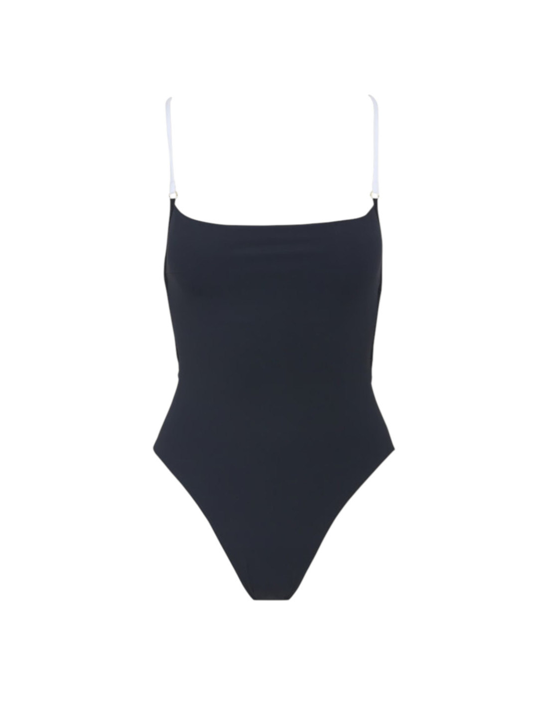 Maillot de bain 1 pièce noir avec fines bretelles blanches