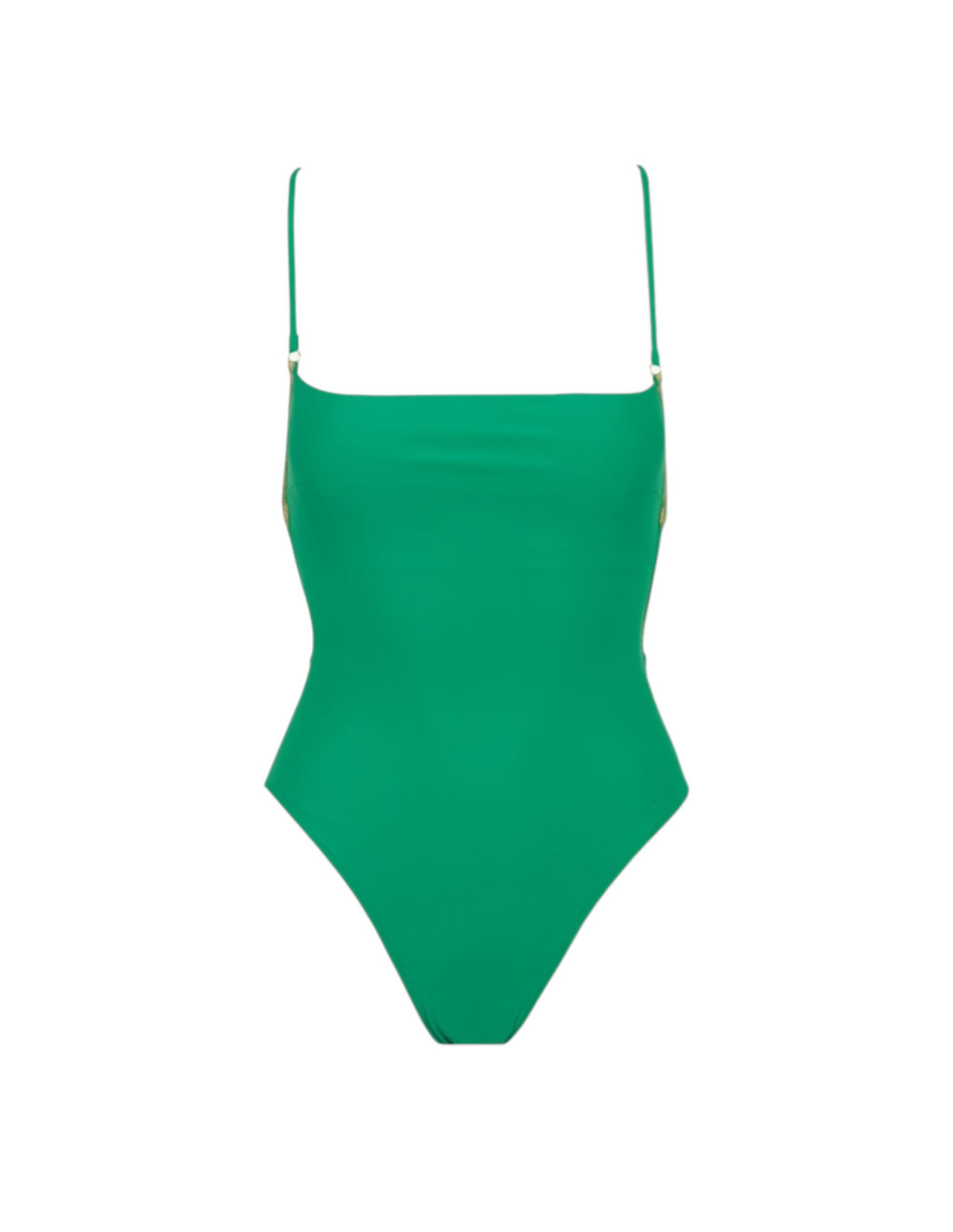Maillot de bain 1 pièce vert avec fines bretelles blanches