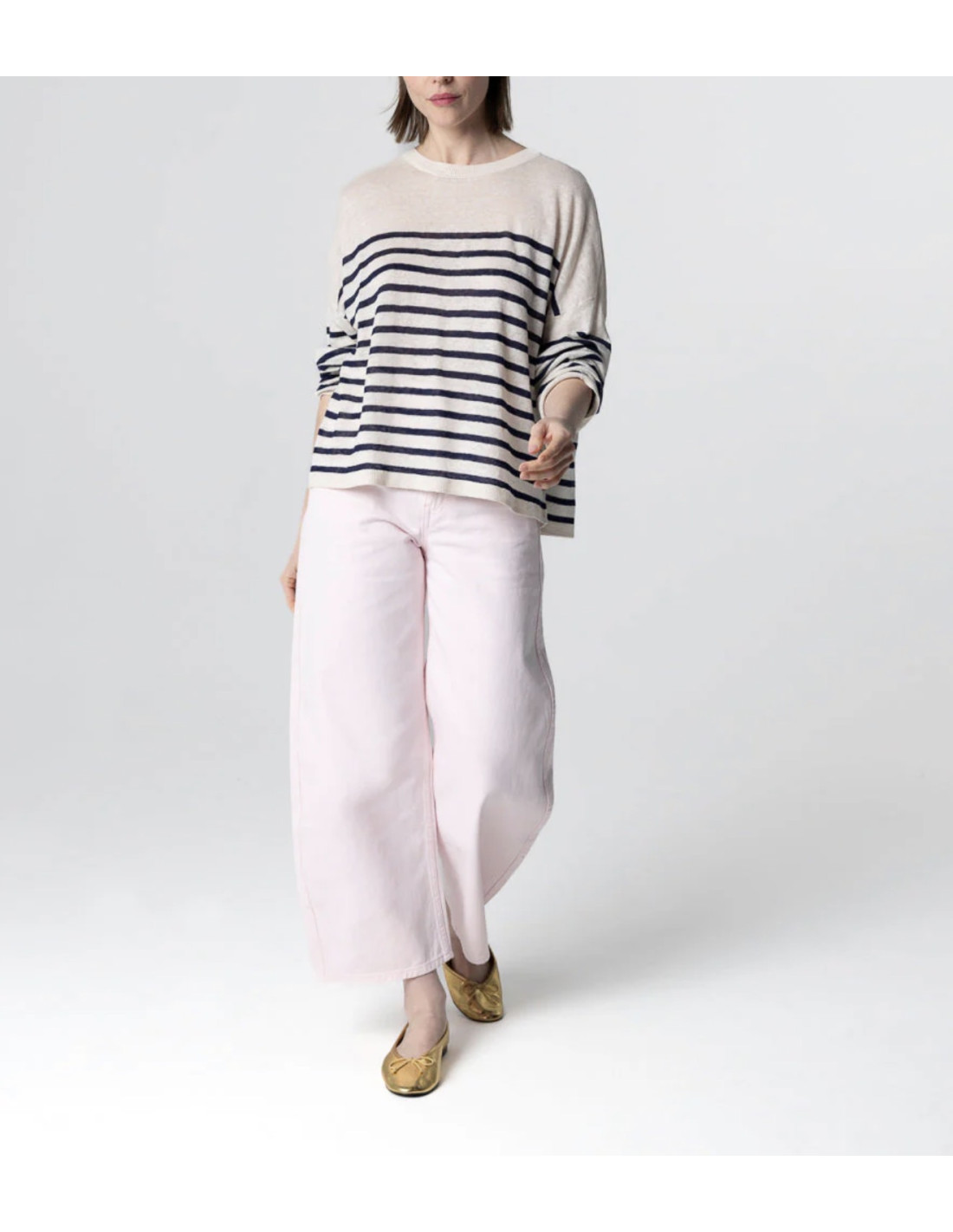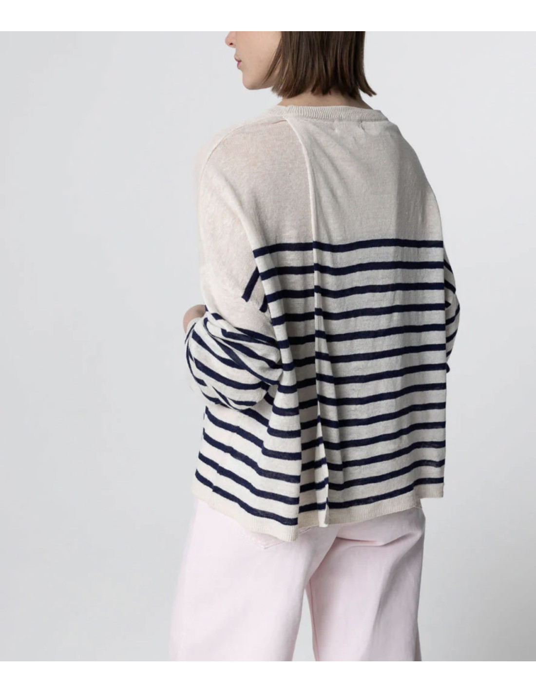 Pull en lin à rayures bleu marine