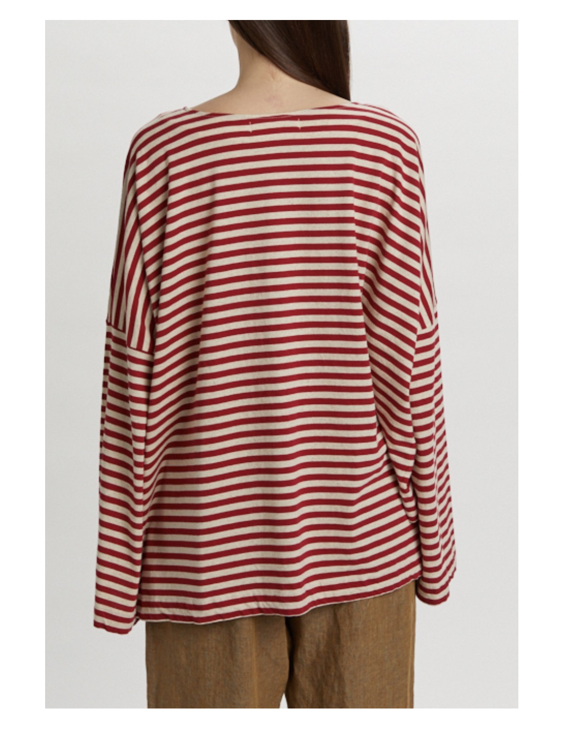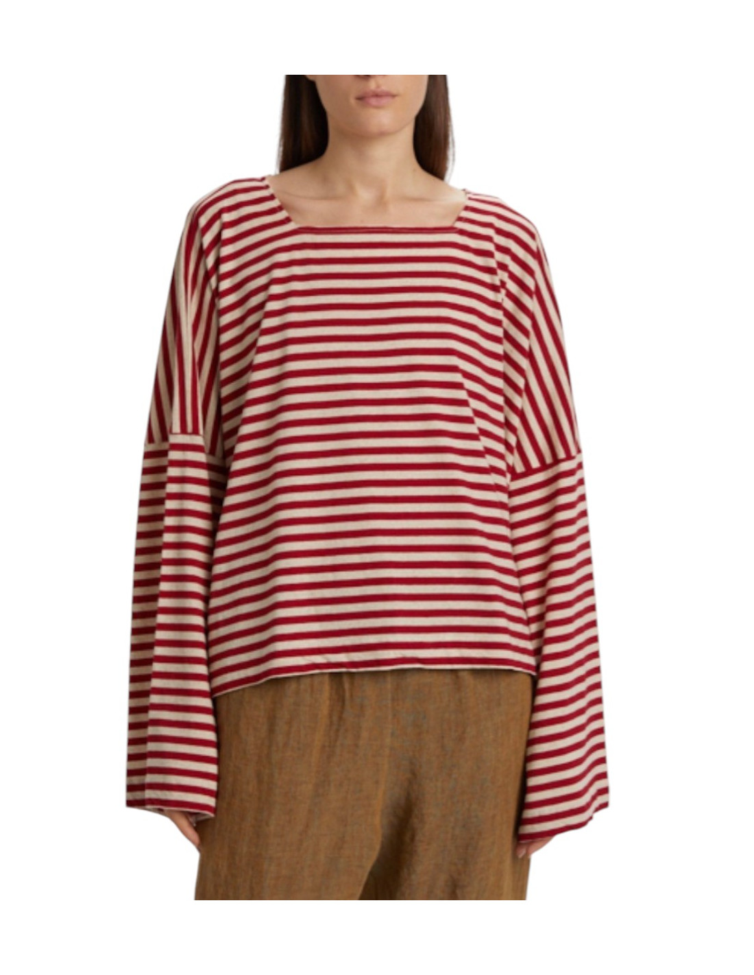 T-Shirt marinière en jersey de coton et lin rayée rouge et écru