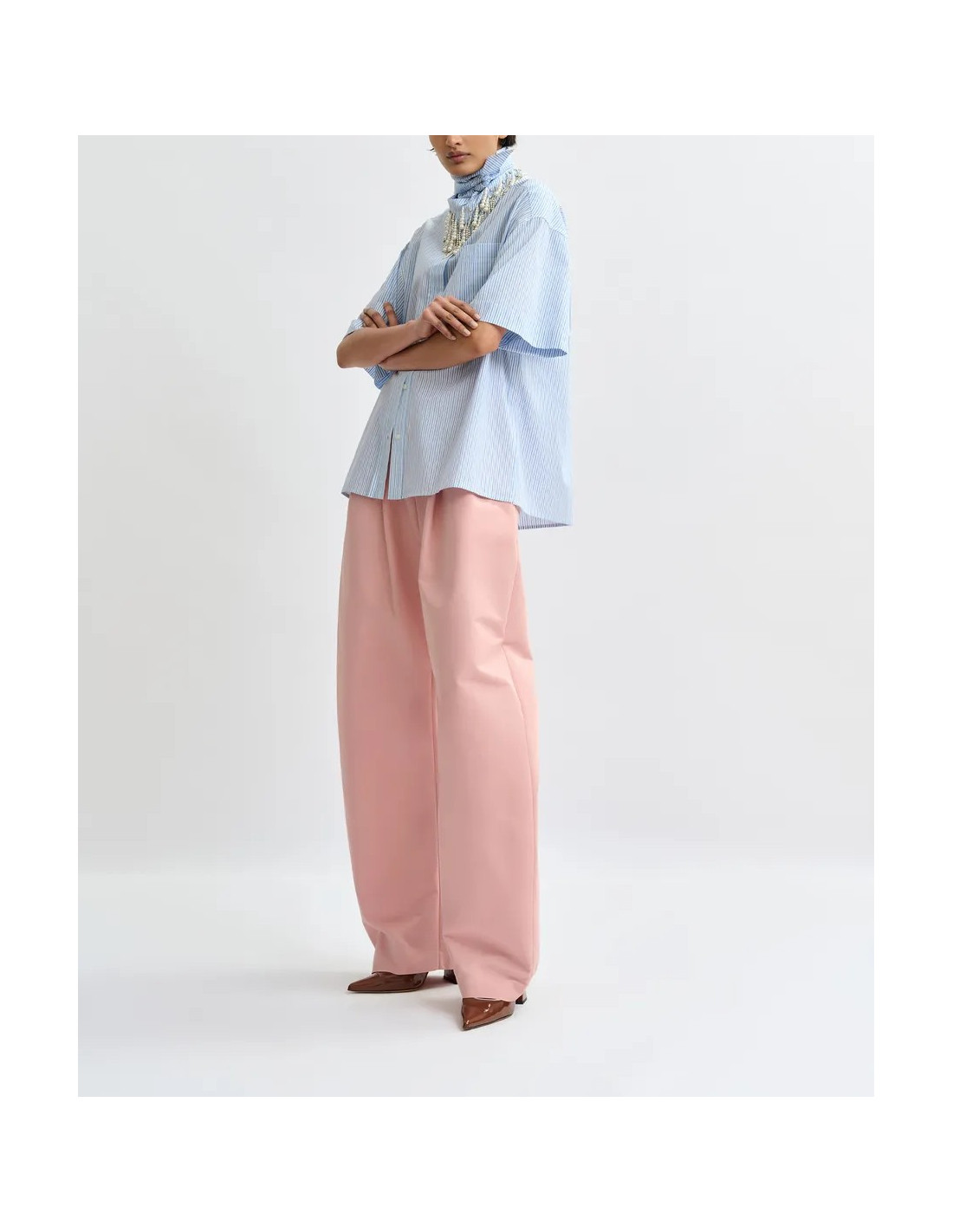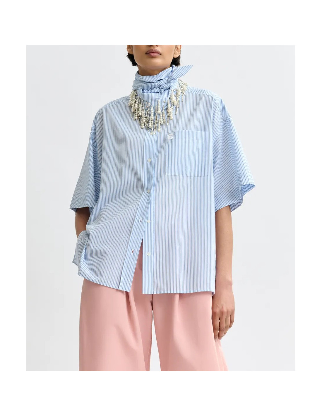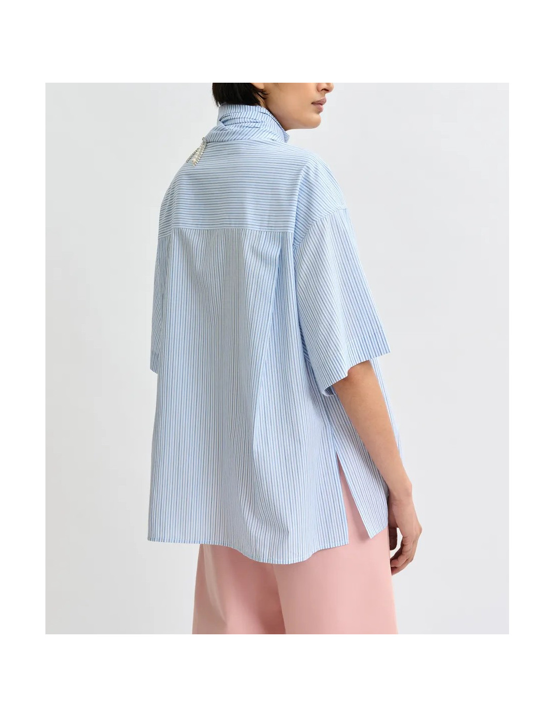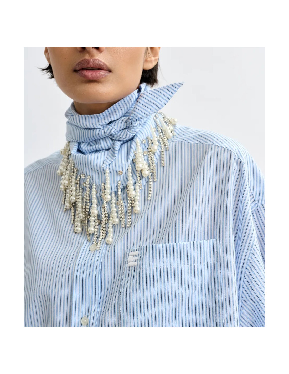 Chemise à rayures bleues avec foulard bijou