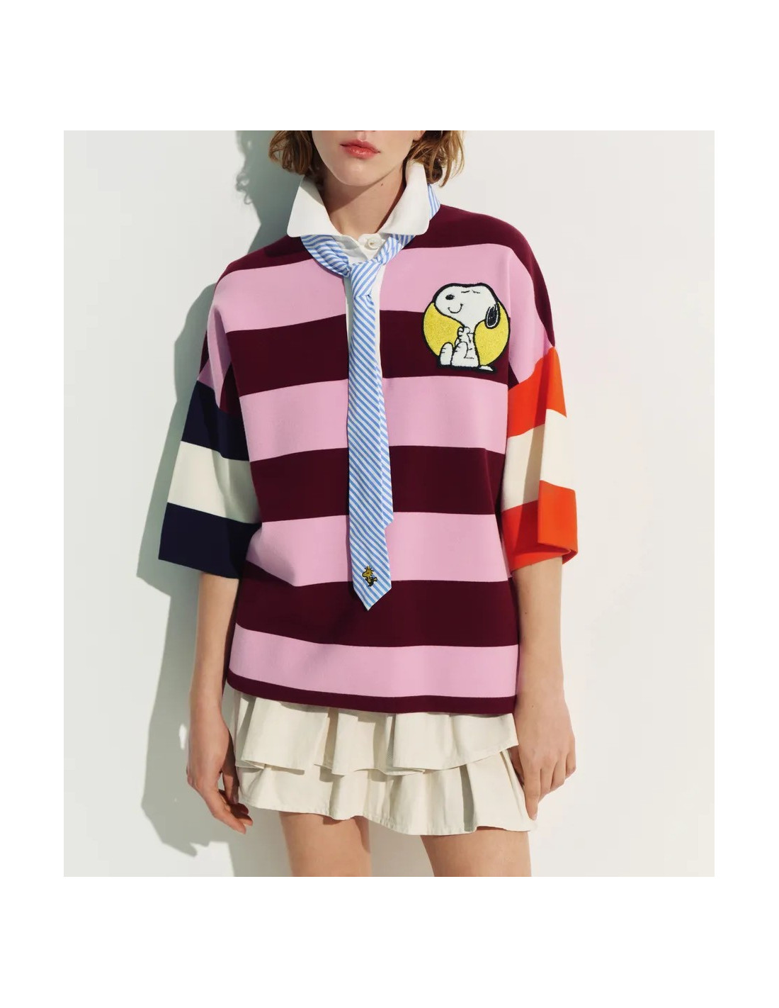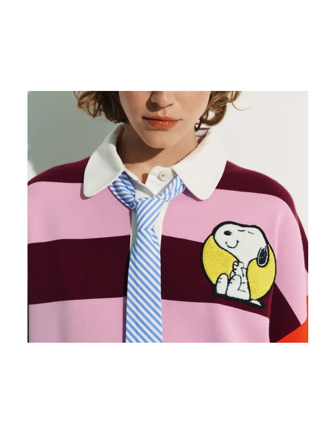 Pull polo à rayures rose et bordeaux Peanuts™ Snoopy