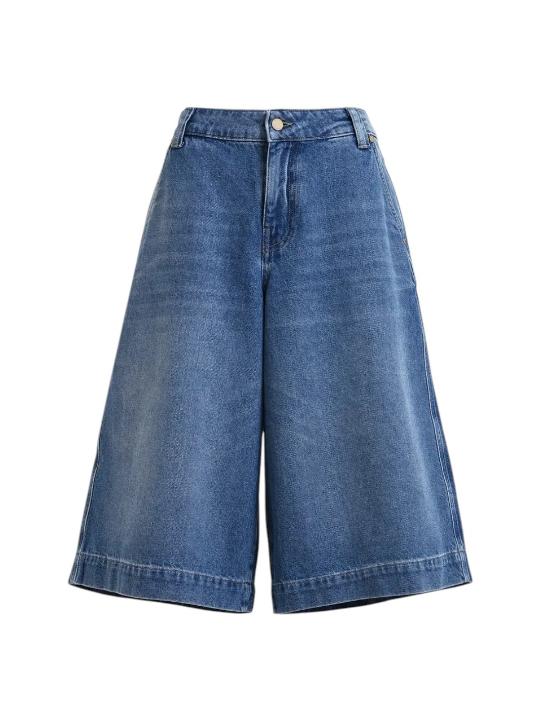 Short en denim ble délavé, coupe décontractée, taille basse et jambe fuselée