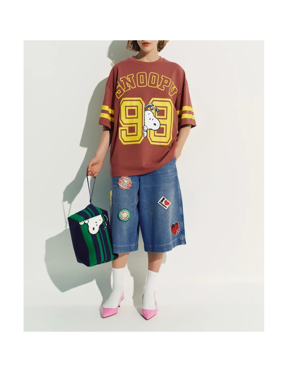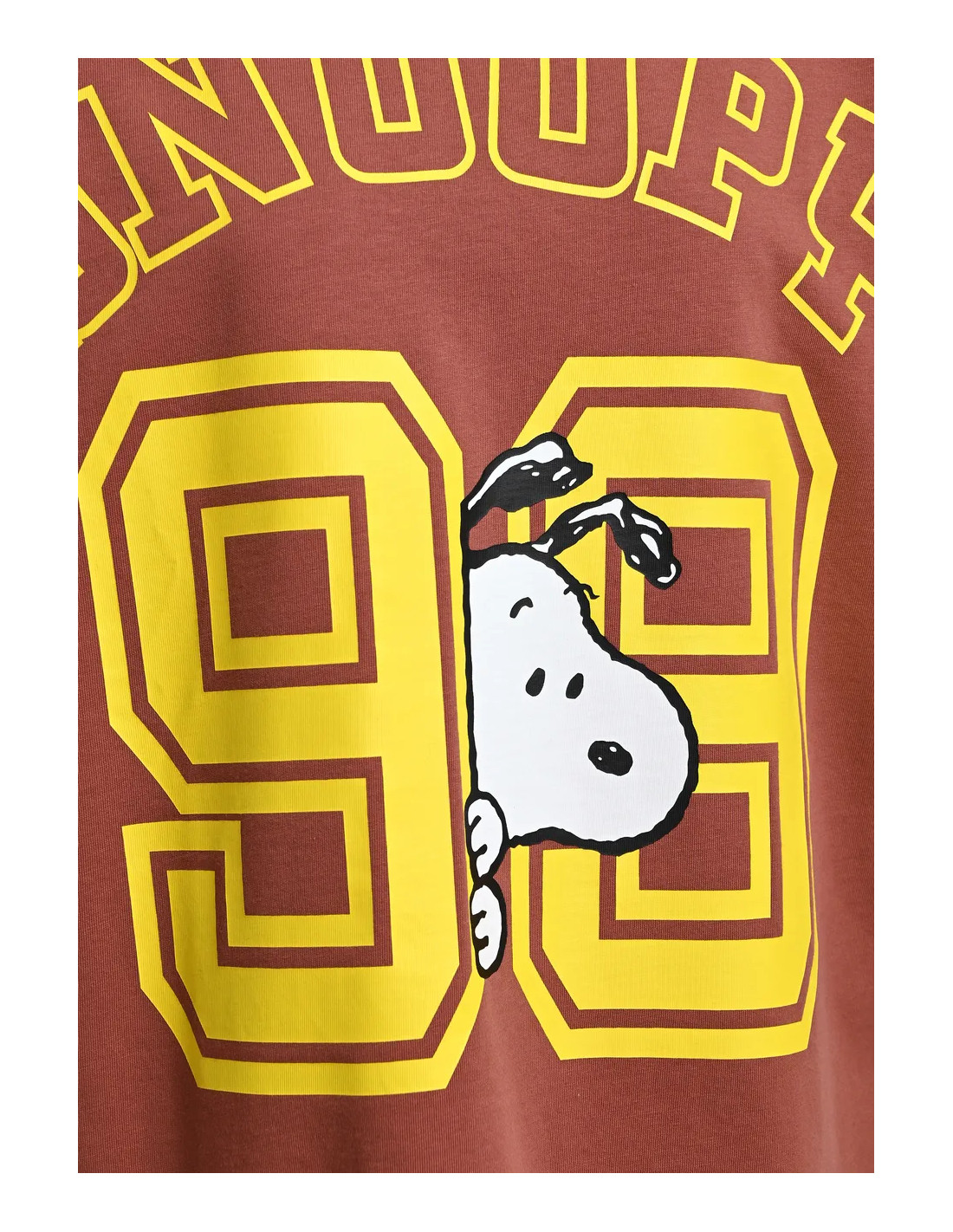 T-Shirt en coton brun avec impression Peanuts™ Snoopy en jaune sur le devant et dans le dos