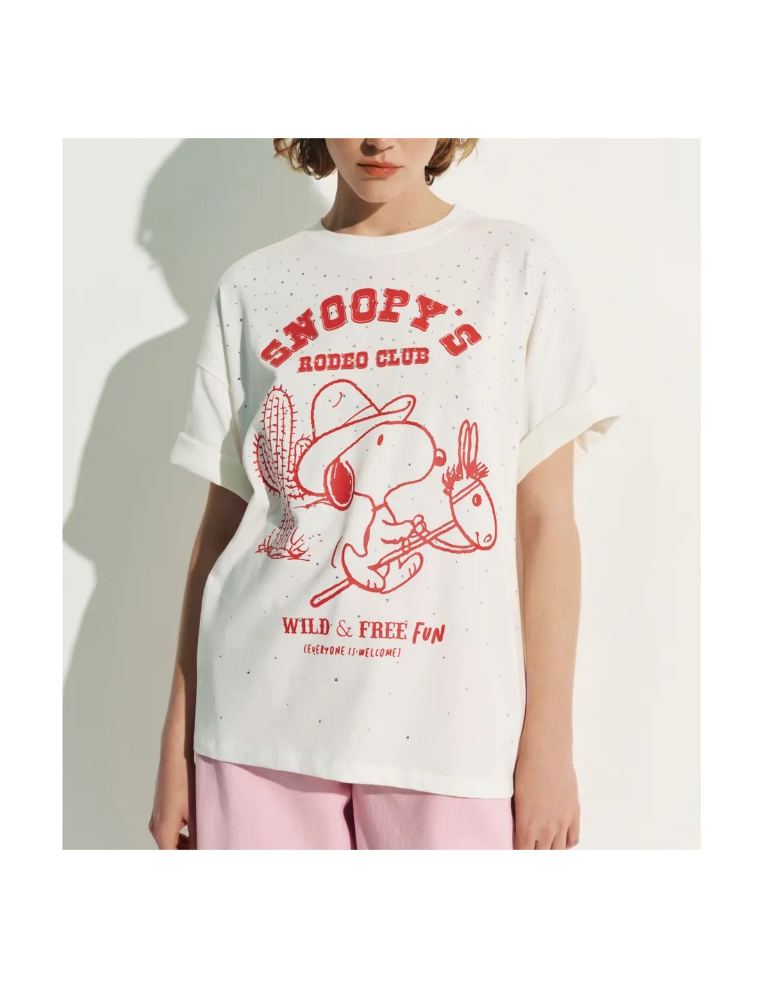 T-Shirt strassé blanc cassé et rouge Peanuts™ Snoopy