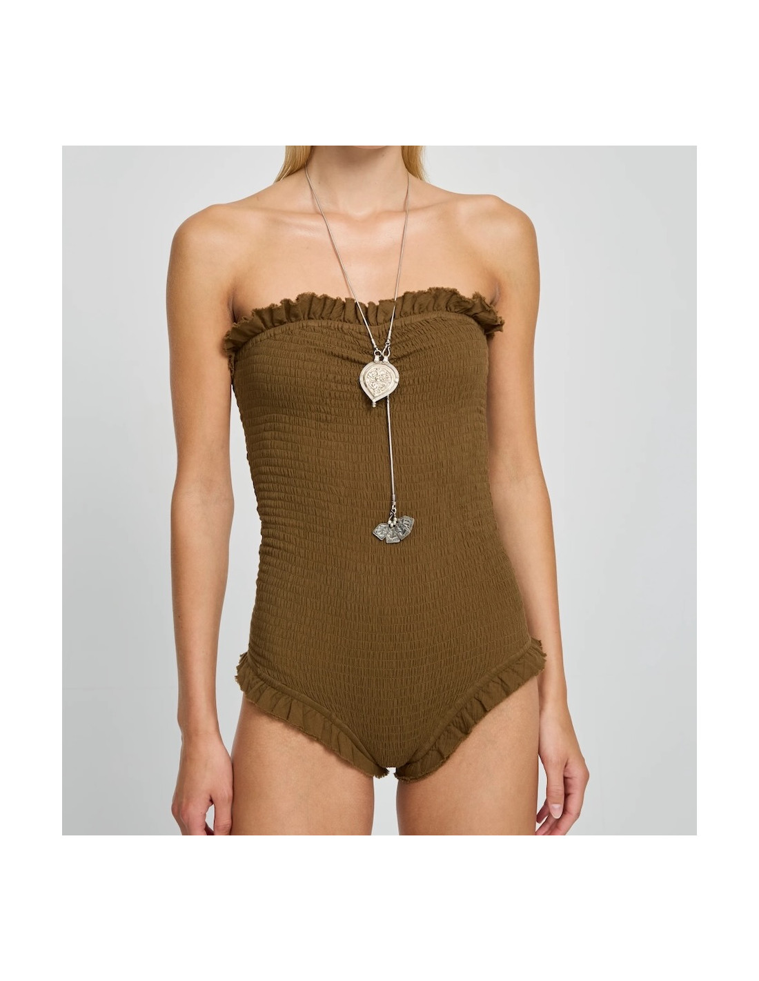 Maillot de bain bustier une piece kaki