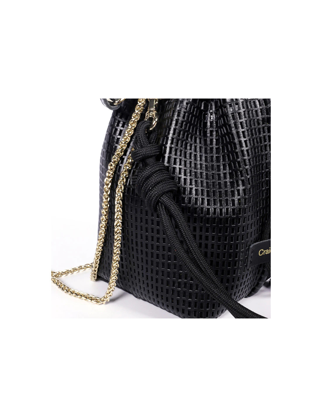 Chaîne dorée et bandoulière en corde d'escalade noire pour un look sporty-chic