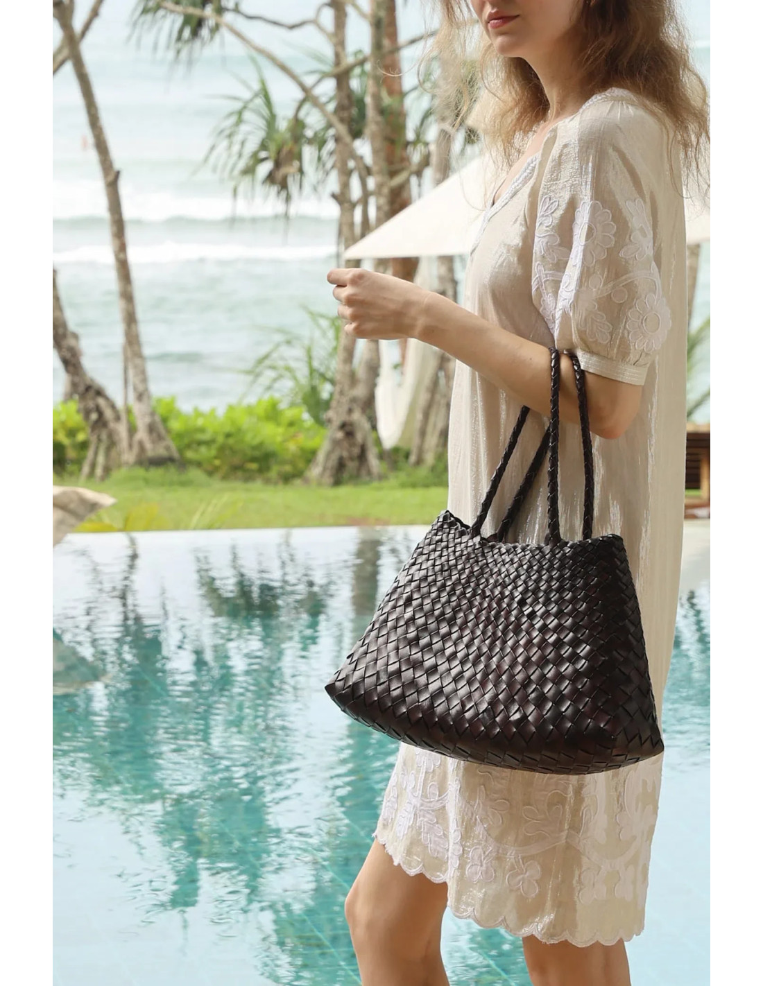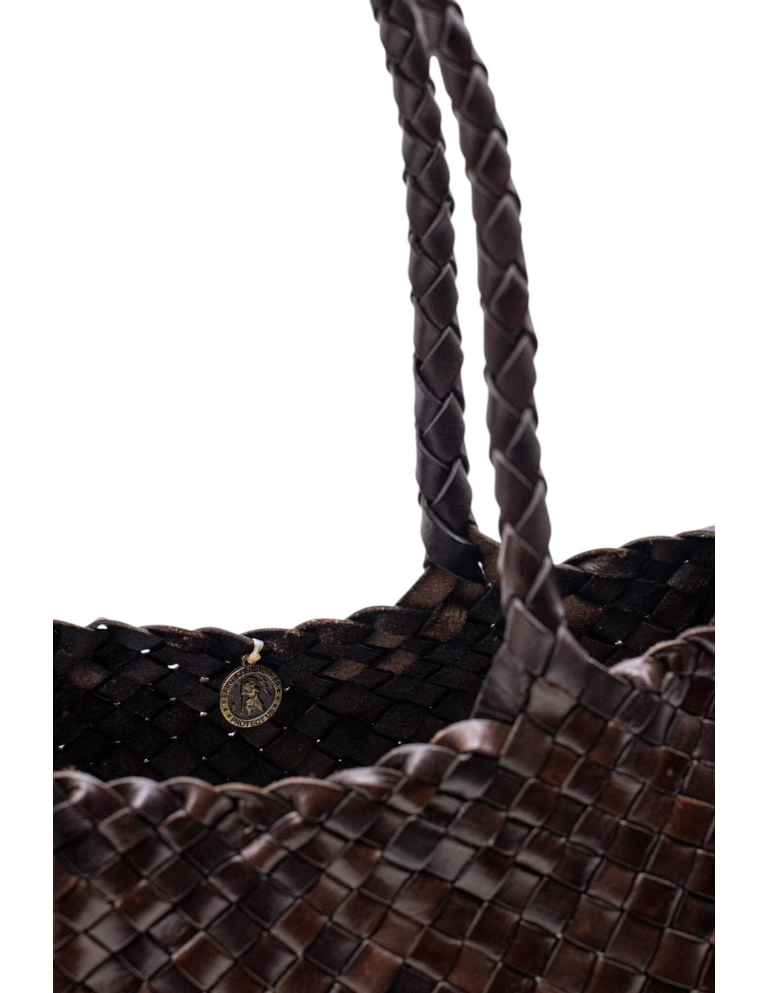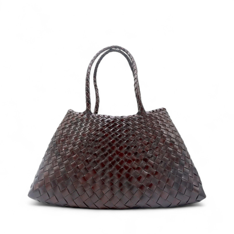 Sac cabas composé de lanières de cuir tressées irrégulières