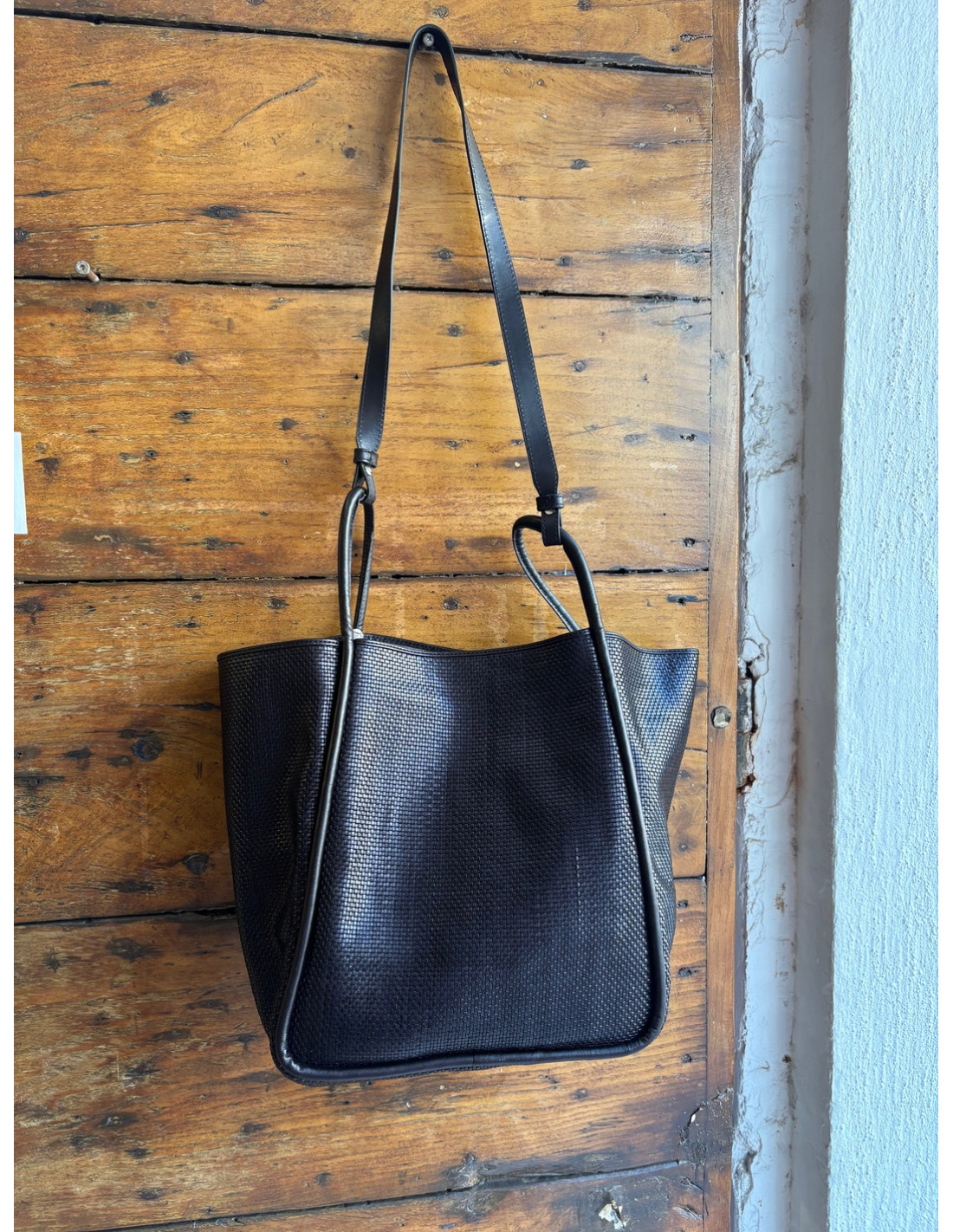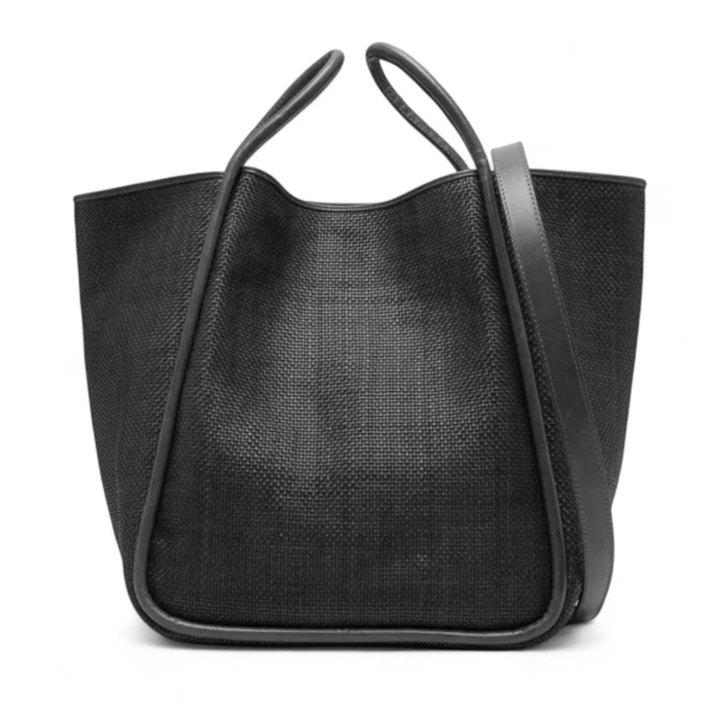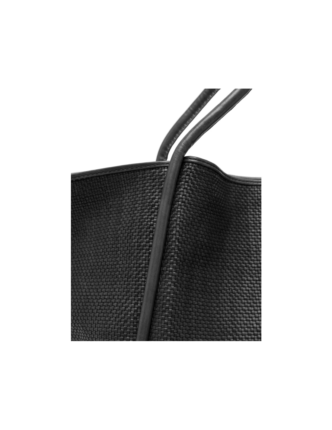 Sac cabas en cuir noir tissé à la main avec liseré en cuir