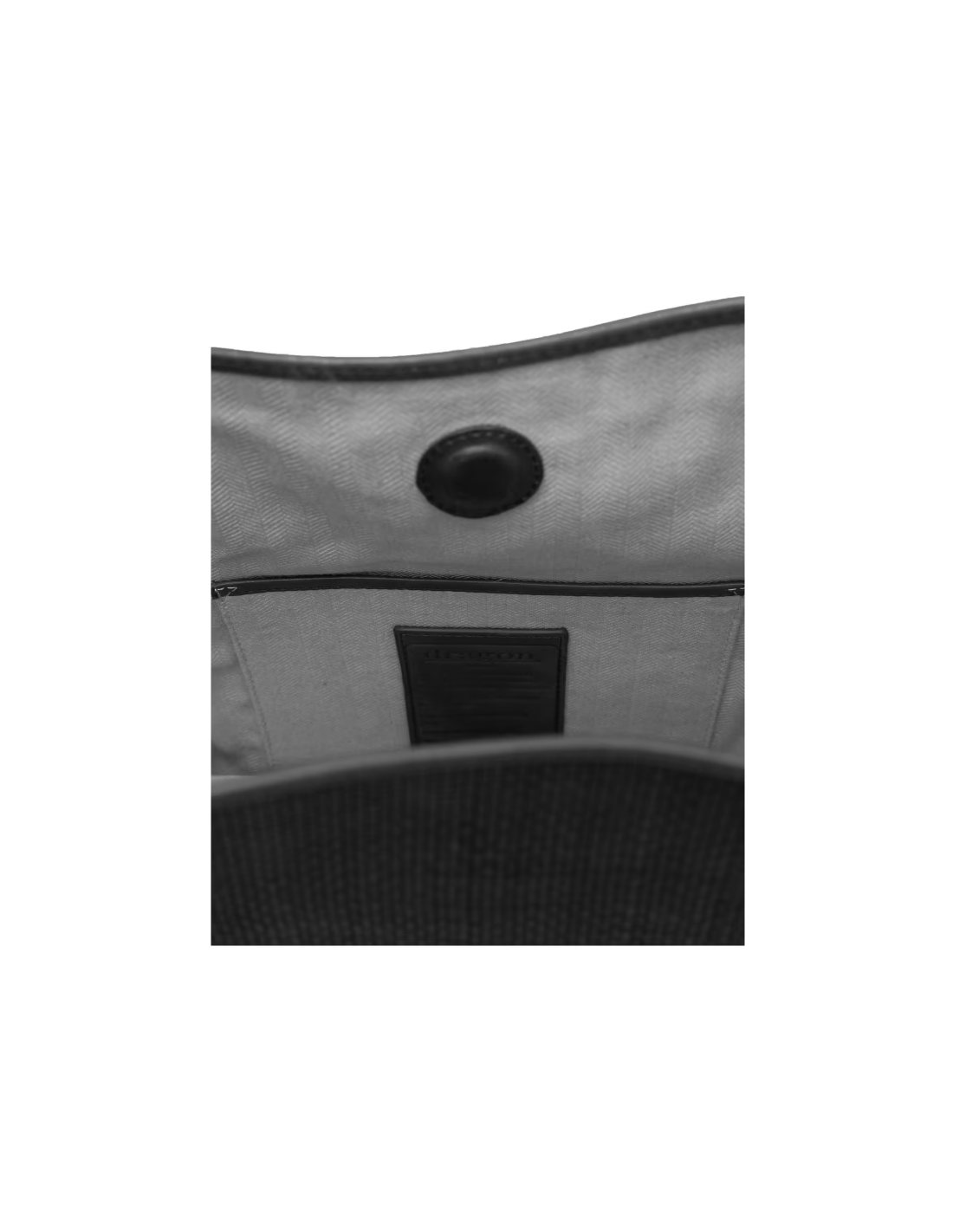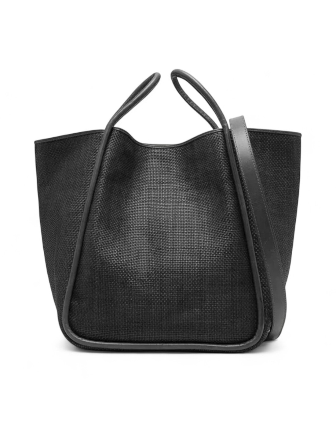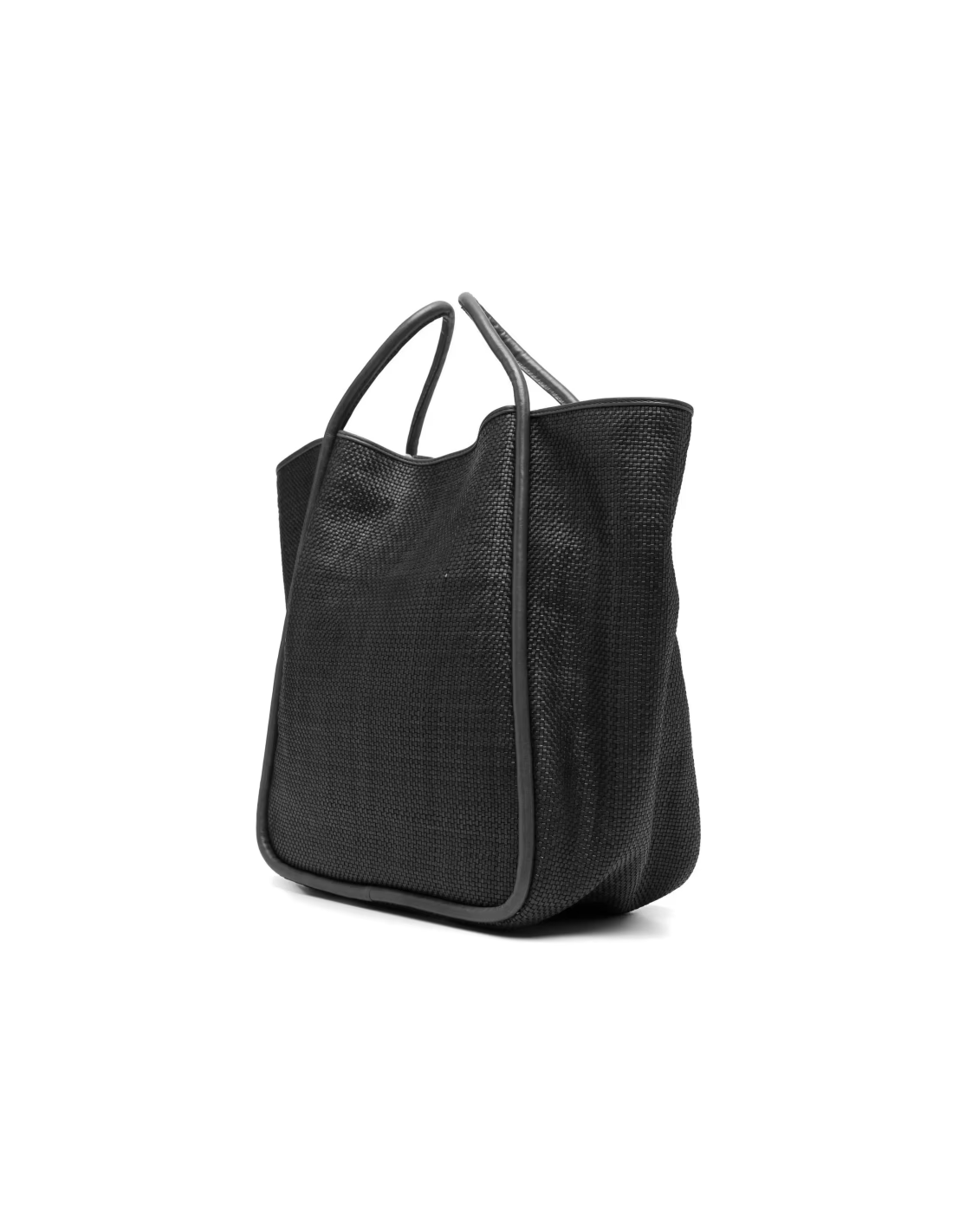 Sac cabas en cuir noir tissé à la main avec liseré en cuir