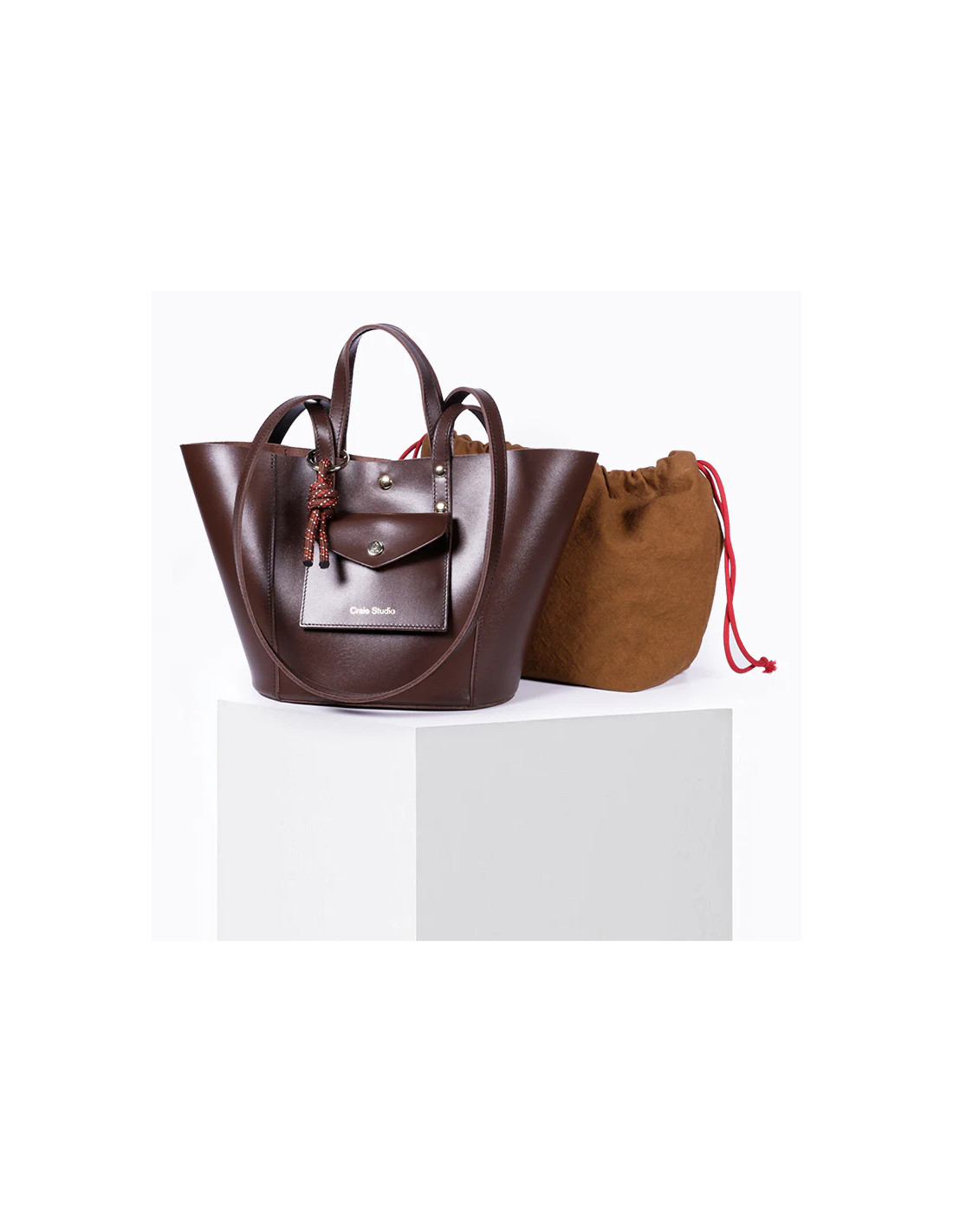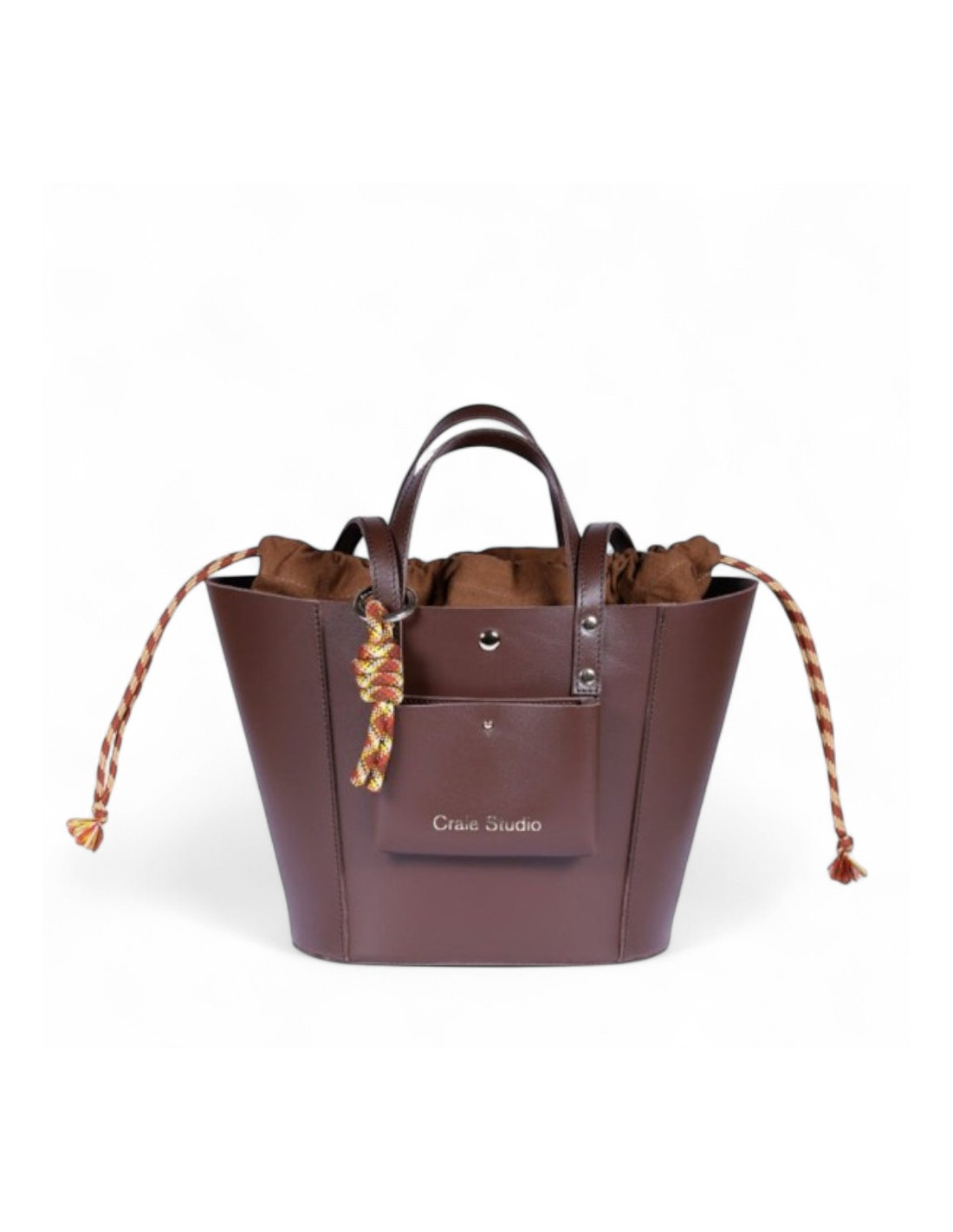 Sac cabas en cuir de veau marron porté main ou porté épaule
